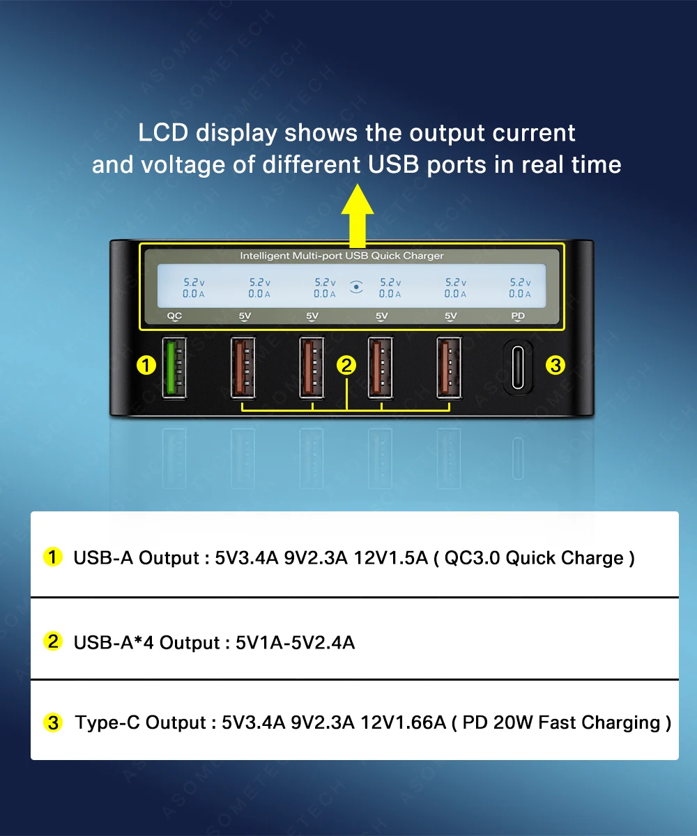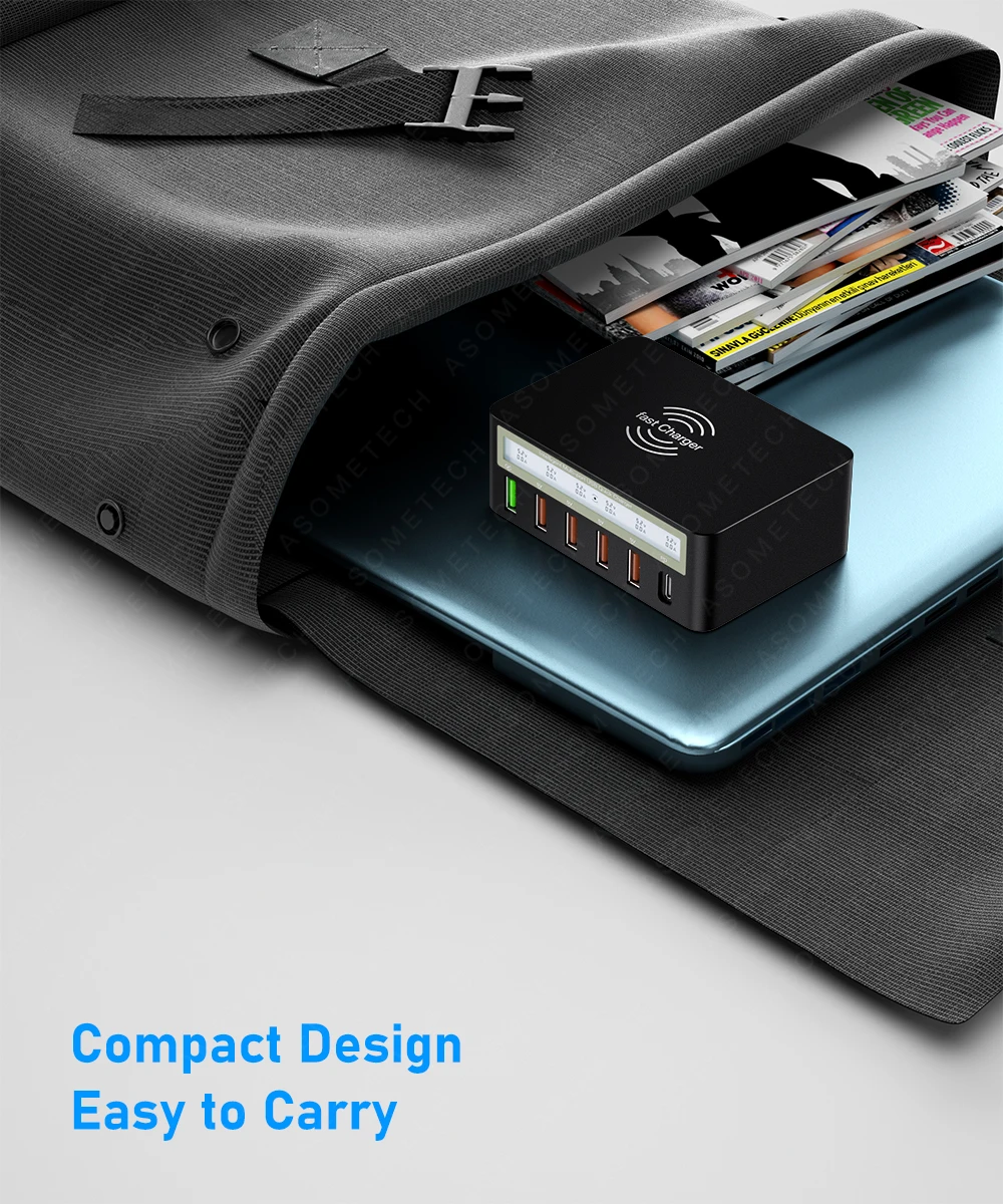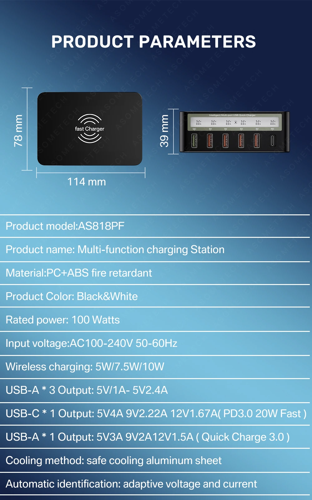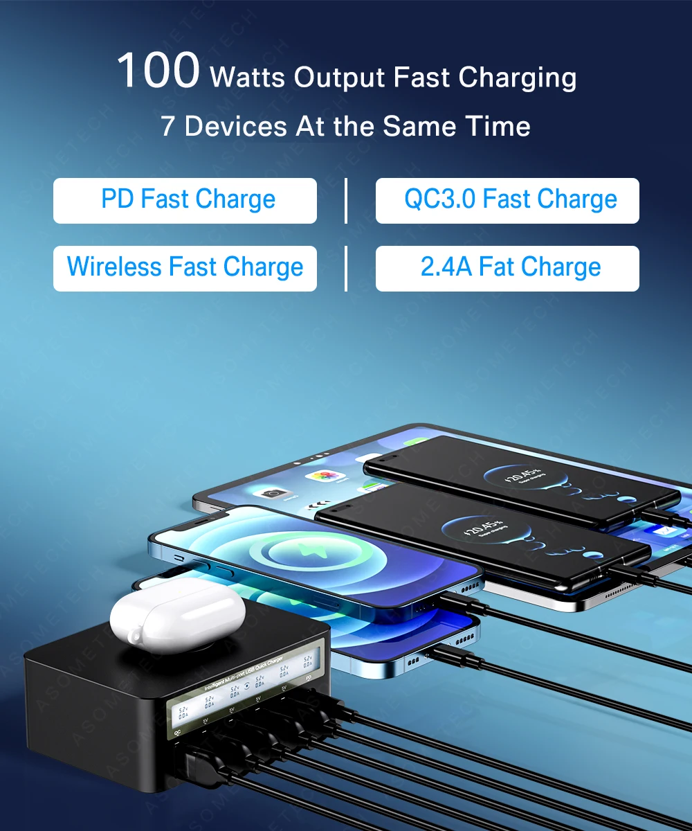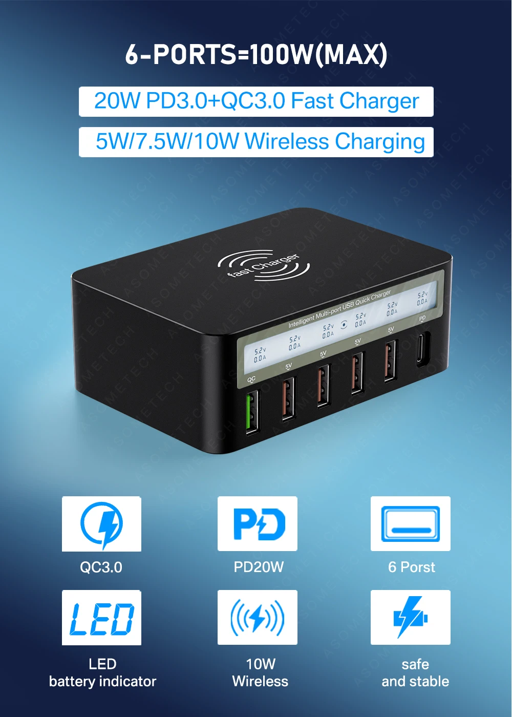 Тип 1 - 100 Вт 6 портов QC + PD Беспроводная зарядная станция