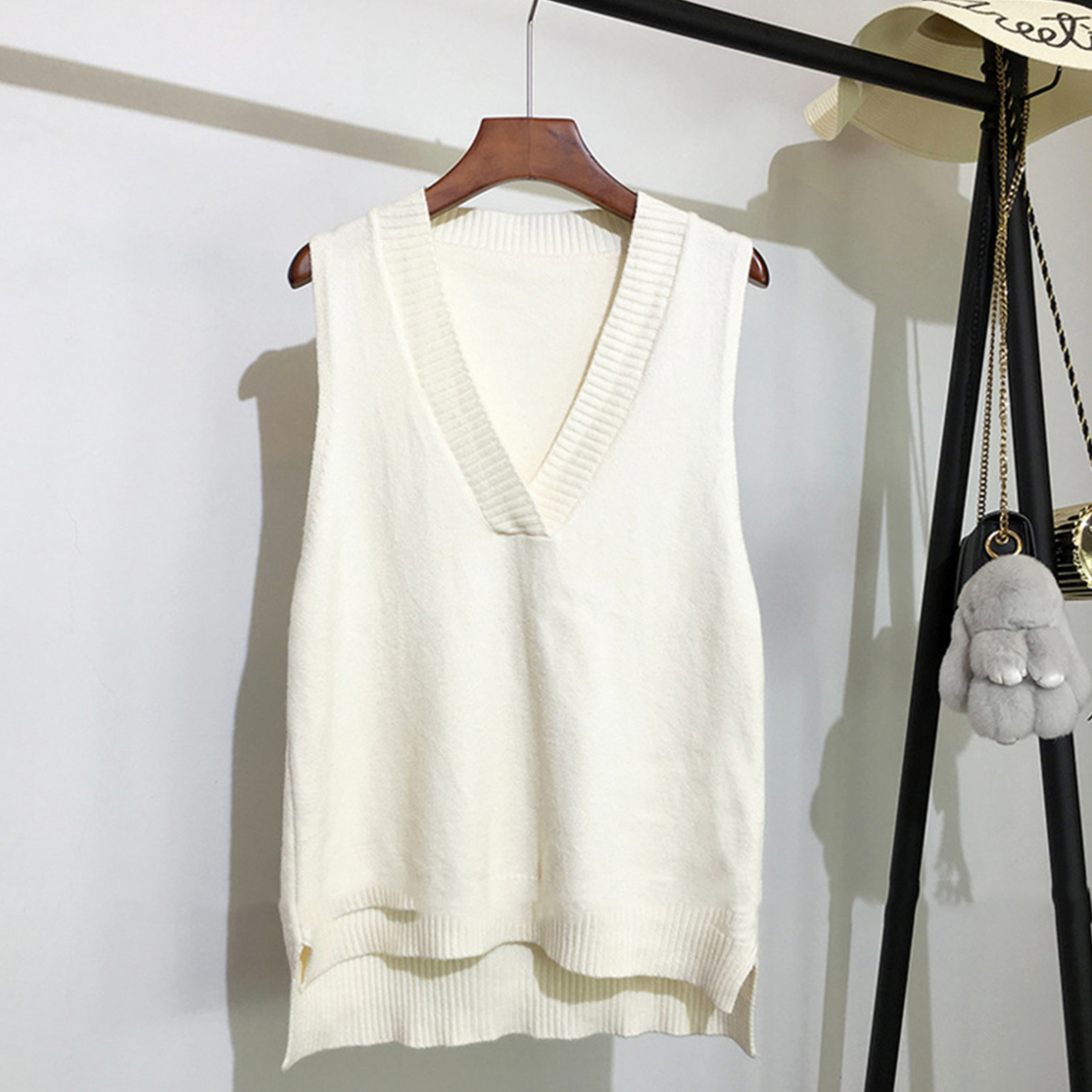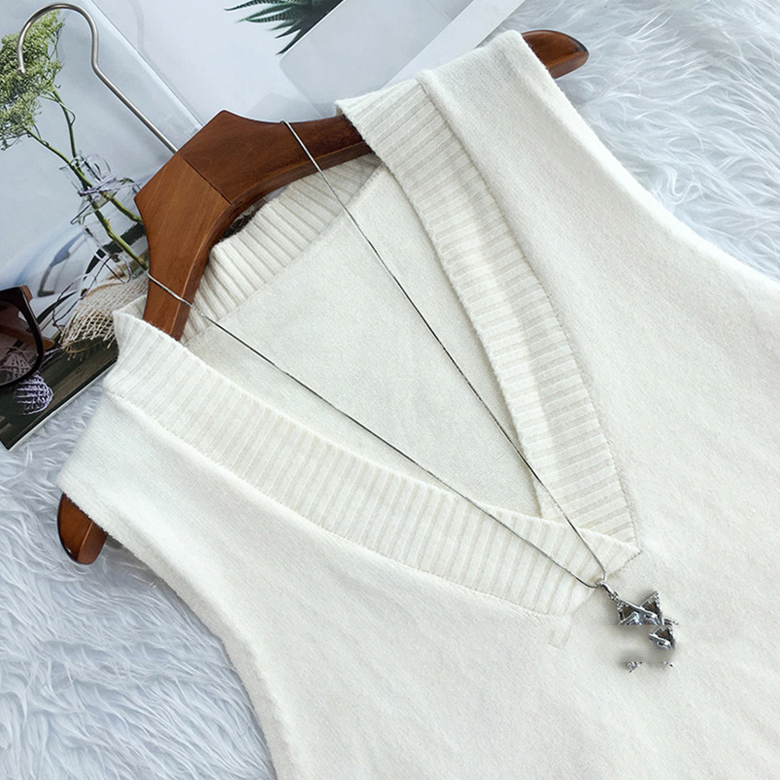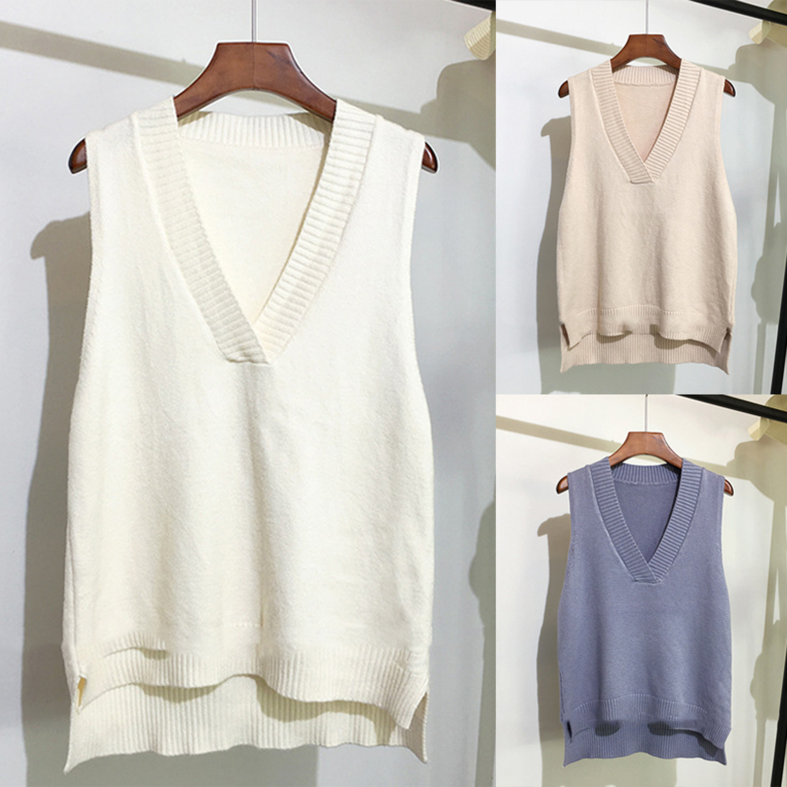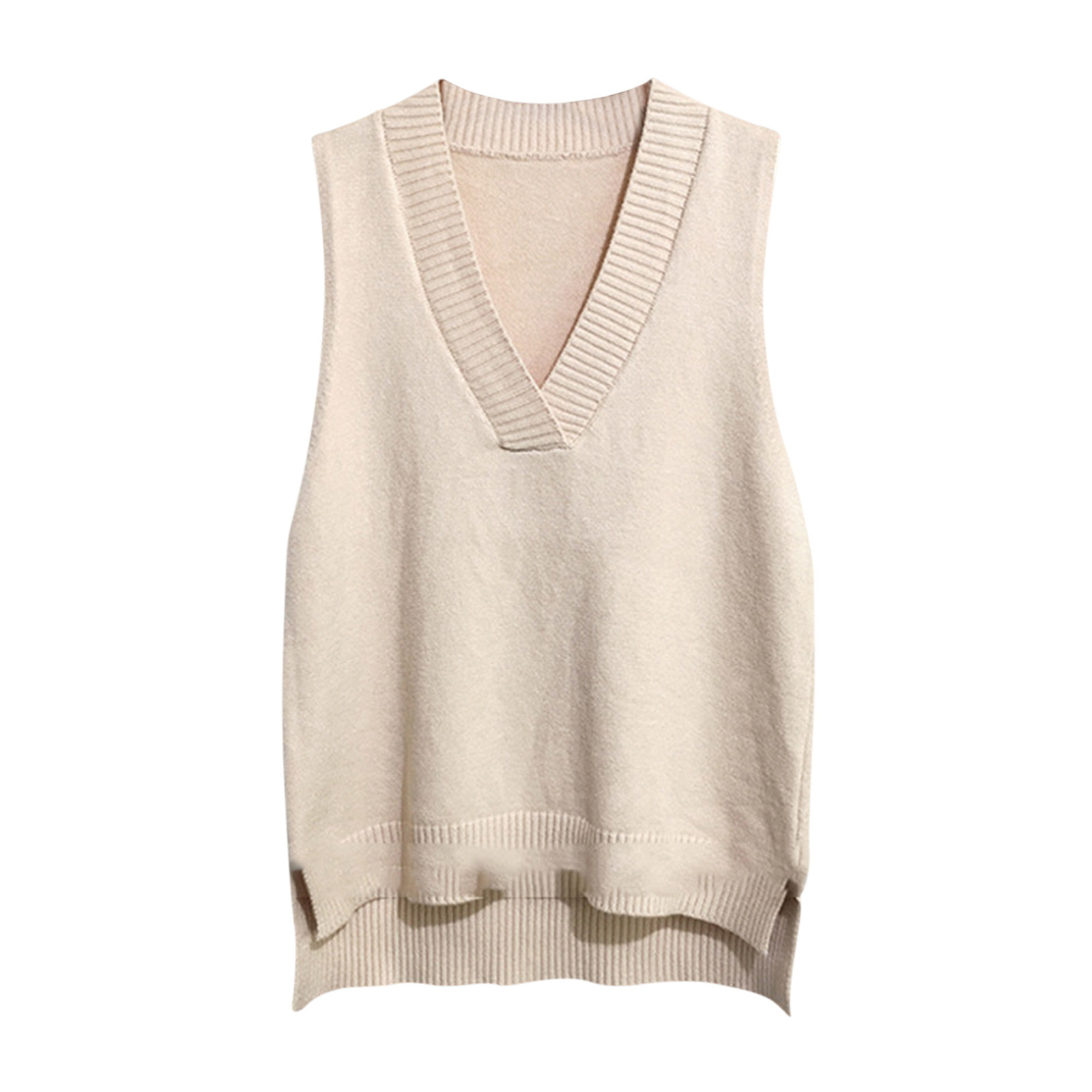 【Особенности】 Жилет с v-образным вырезом, Свитера без рукавов, трикотажные топы свободного кроя. Модный Вязаный свитер обожает современных женщин.
