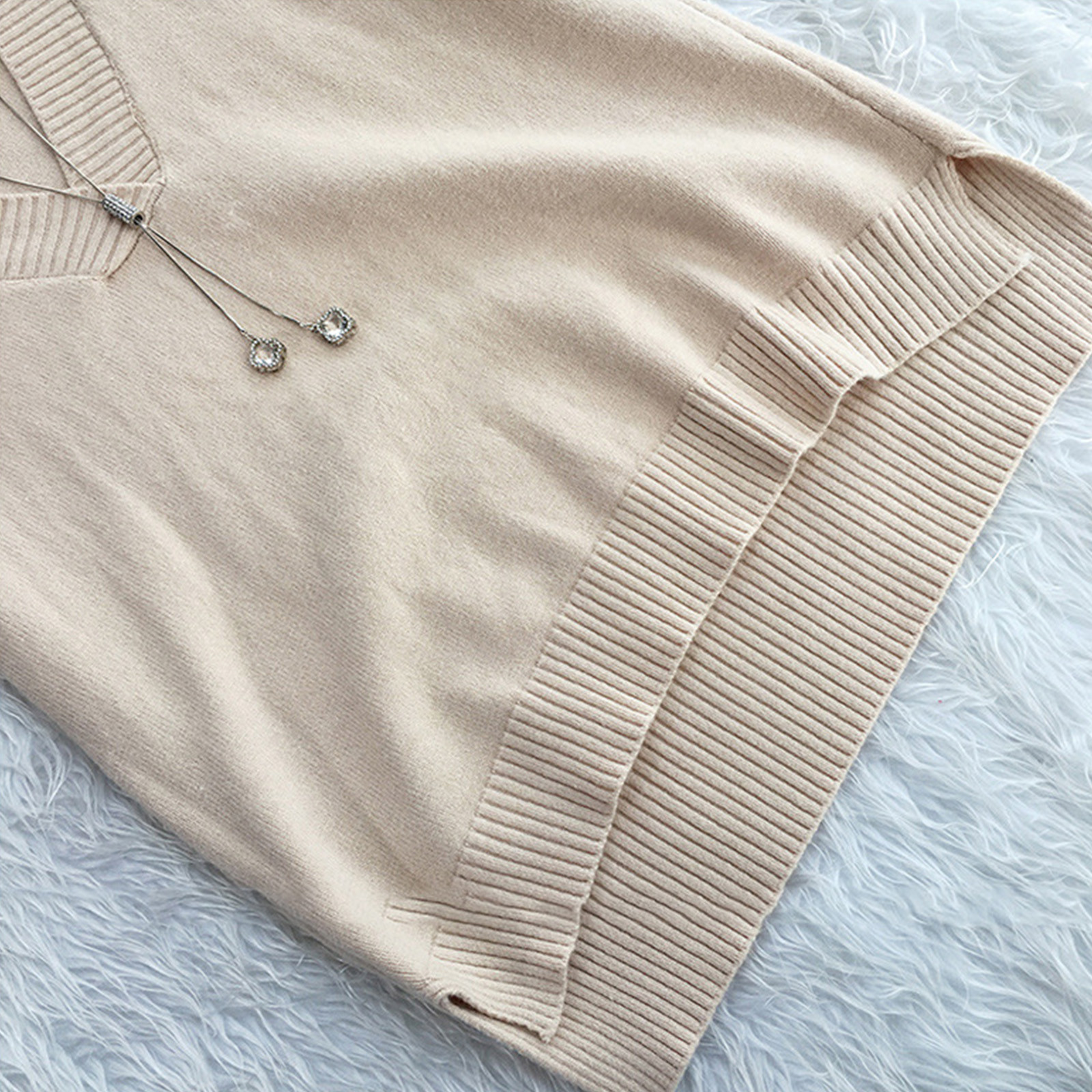 [Идея подарка] Большой размер Свитер-жилет хорошо закрывает промежность, живот и ягодицы, особенно Подходит для грушевидного тела.