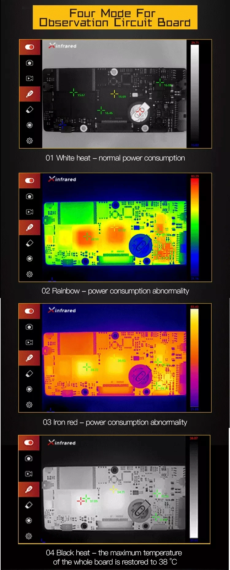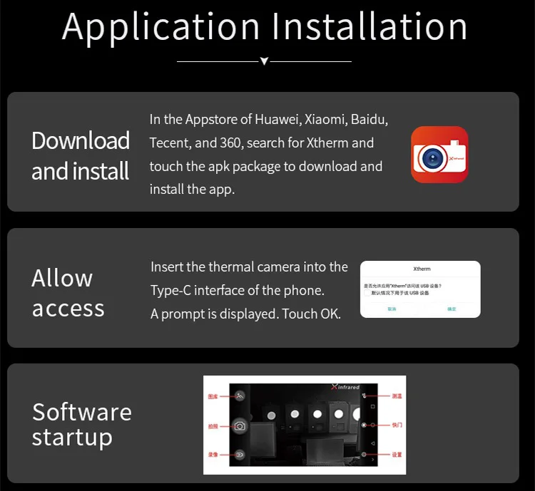 Подходит для: интерфейса системы Android Type C (plug and play) приложения: Поиск потери тепла, состояние изоляции, электрические проблемы и повреждения воды. Ночное видение в полной темноте и откройте для себя новые вещи о вашем мире.