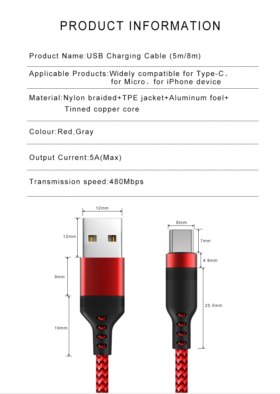 [Умный чип и Защита аккумулятора]: Встроенный смарт-чип может защитить аккумулятор/Встроенный смарт-чип на интерфейсе может уменьшить потерю срока службы батареи. Кабель 5 м поддерживает передачу данных и синхронизацию со скоростью до 480 Мбит/с и чрезвычайно быструю передачу аудиовизуальных/офисных файлов.