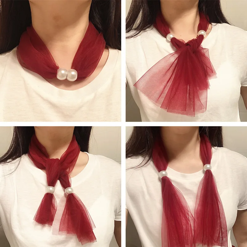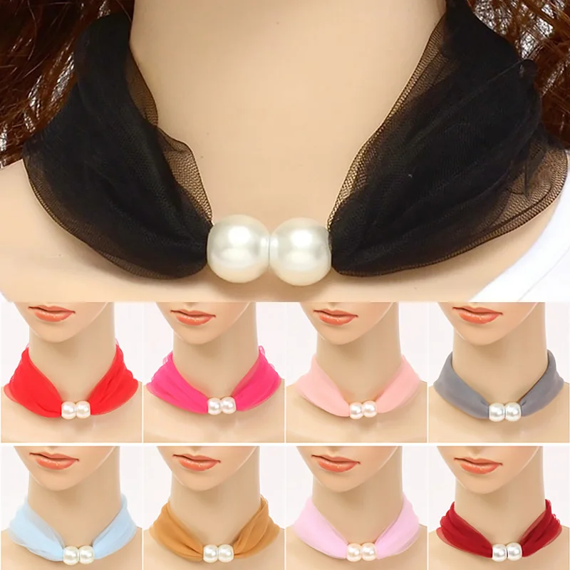 Новинка весны и осени, ожерелье, шарф, корейский тонкий маленький шелковый шарф, сетчатая пряжа, кружевное украшение с жемчугом, милый нагрудник, аксессуары для банкетного платья
