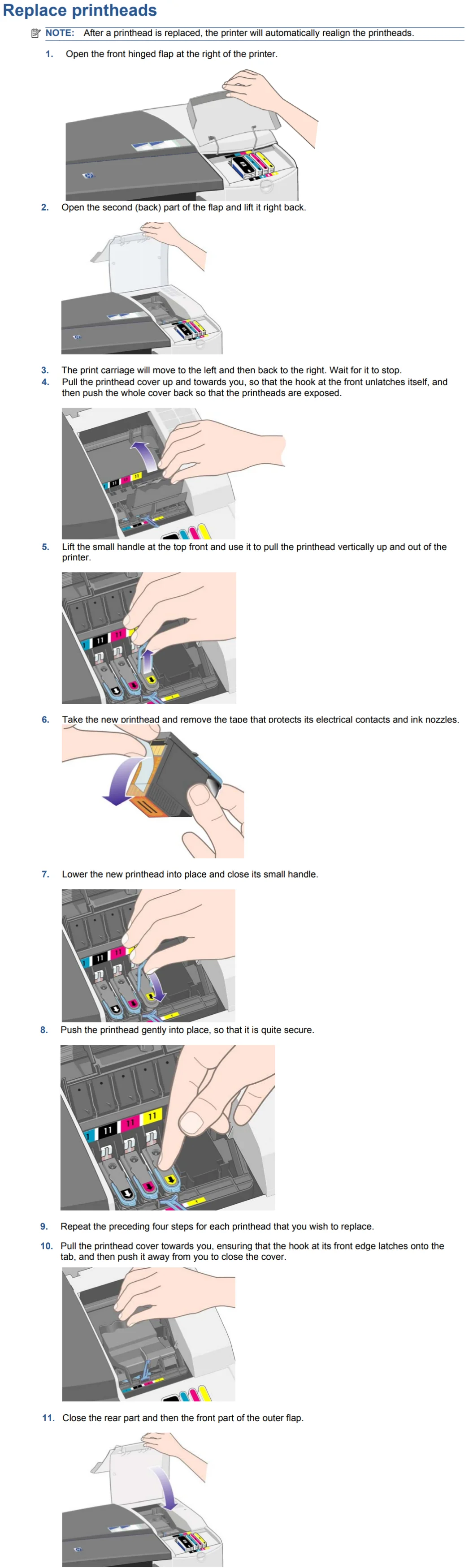 Примечание: 1. Перед заменой печатающей головки убедитесь, что емкость картриджа составляет более 20%.2. Во время процесса замены, если machinepromps "открыть окно toдоступа печатающие головкиИли нажмите X toquit', выключите источник питания хоста и включите его.