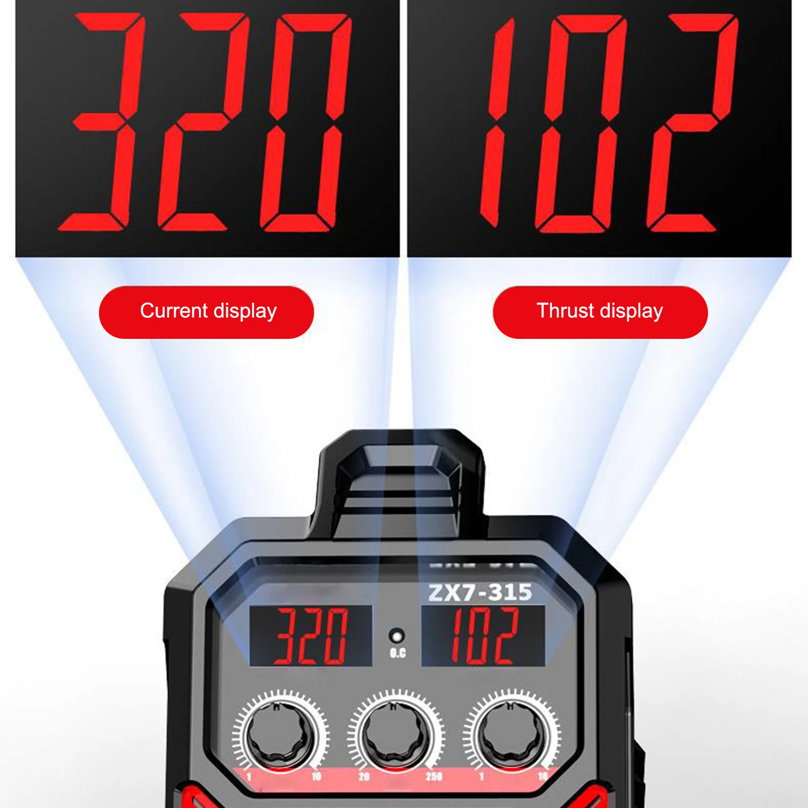 -Дисплей с двумя экранами, понимание работы за считанные секунды, цифровой дисплей высокой четкости, регулировка сварочного тока, чтобы автоматически совпадать с одним поворотом.