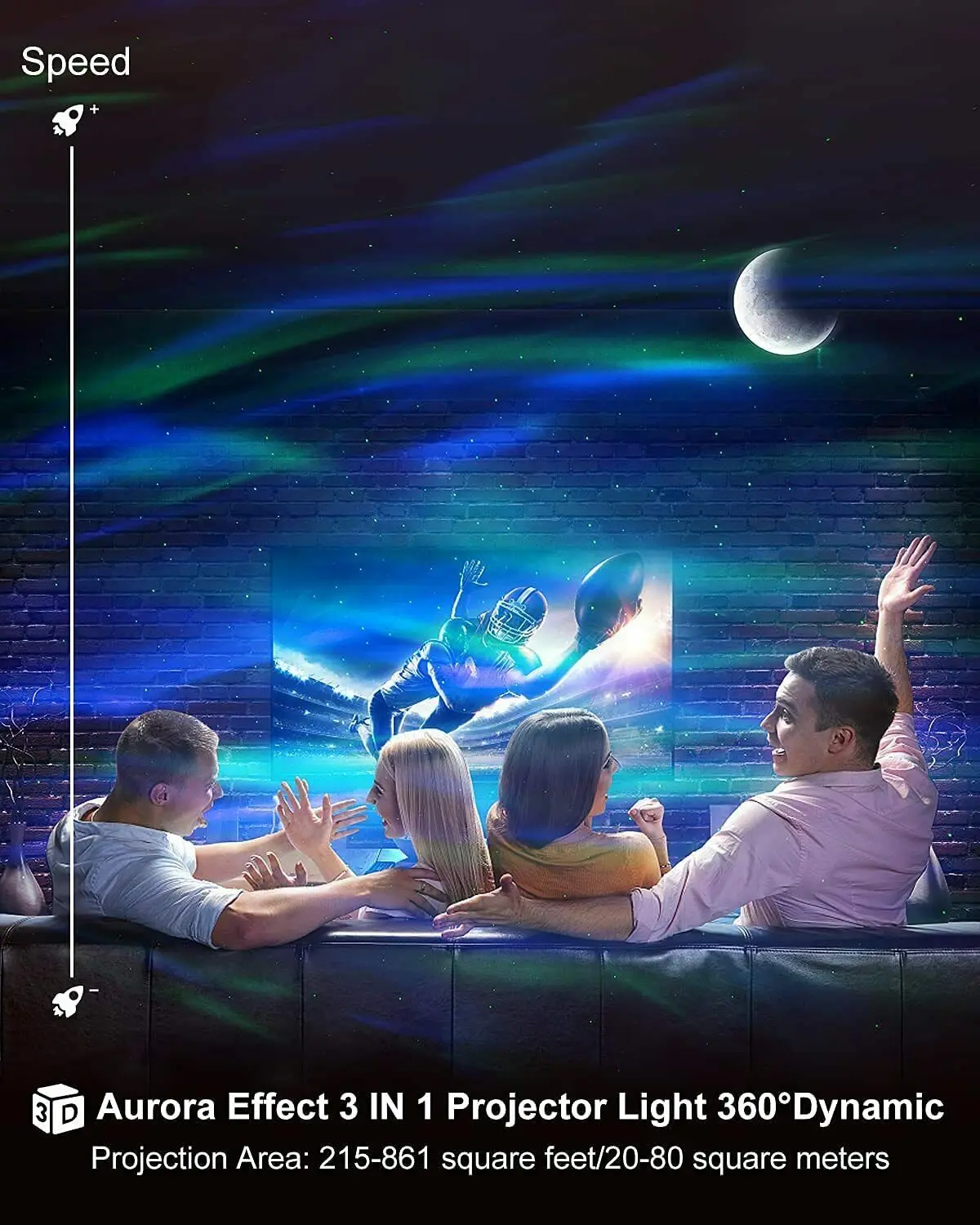 [Пульт дистанционного управления и bluetooth-динамик] вы можете выбрать режим проекции Авроры, звездного неба или Луны через пульт дистанционного управления или одновременно выбрать три режима, изменить скорость цвета и яркость светильник, И отрегулируйте громкость и режим звука музыки. Высококачественная музыка и проектор galaxy Создают Романтическую и успокаивающую атмосферу в ночном небе.