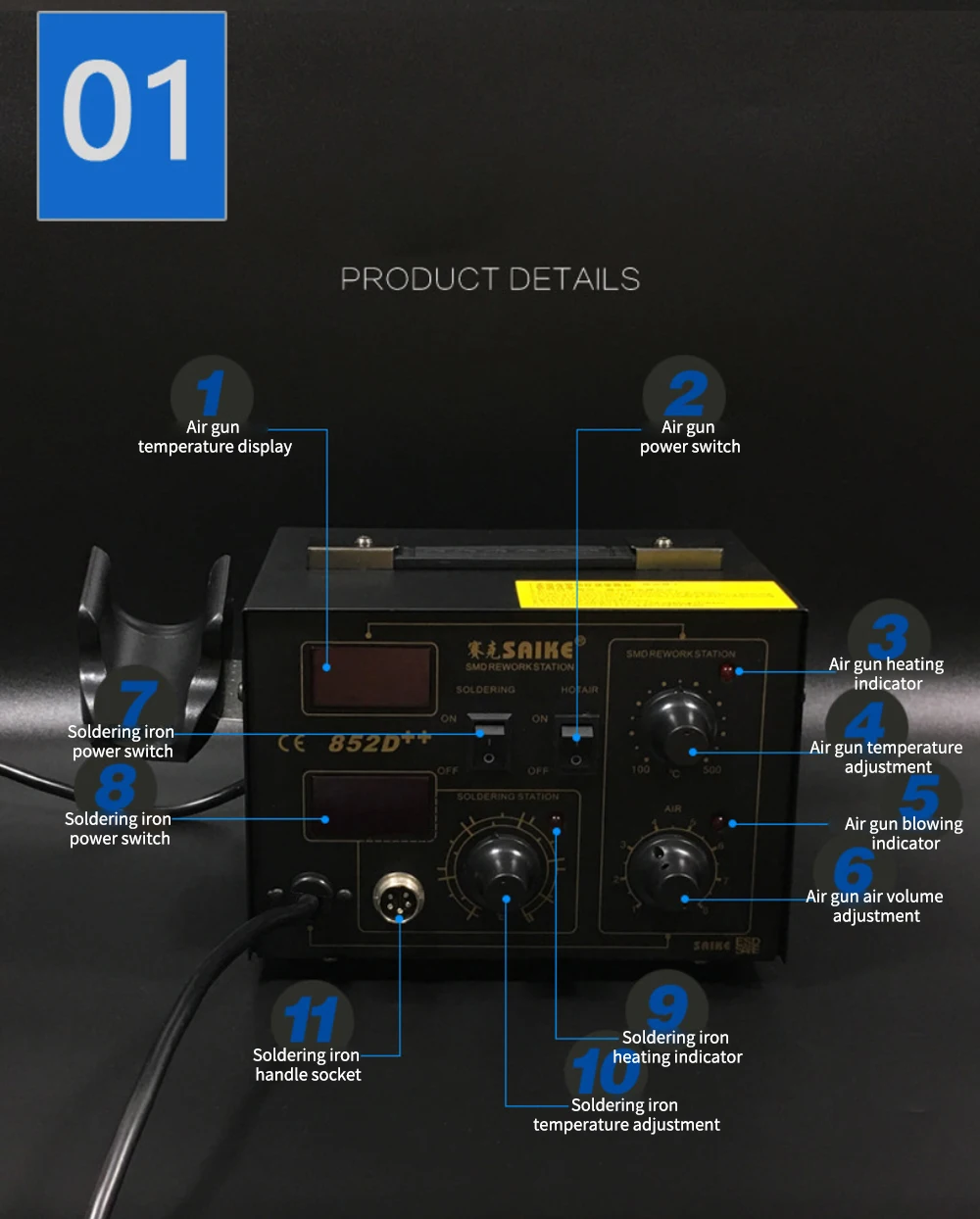 852D + + основана на производительности, конструкции и упаковке 852D +, более стабильных и надежных электрических свойствах, цепной конструкции и упаковочной конструкции.
