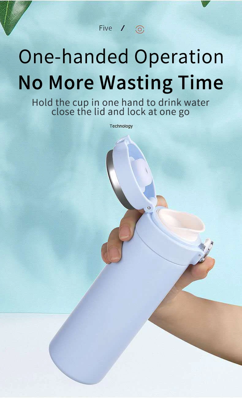 1. Держите чашку в одной руке, чтобы пить воду, закройте крышку и зафиксируйте на одном ходу