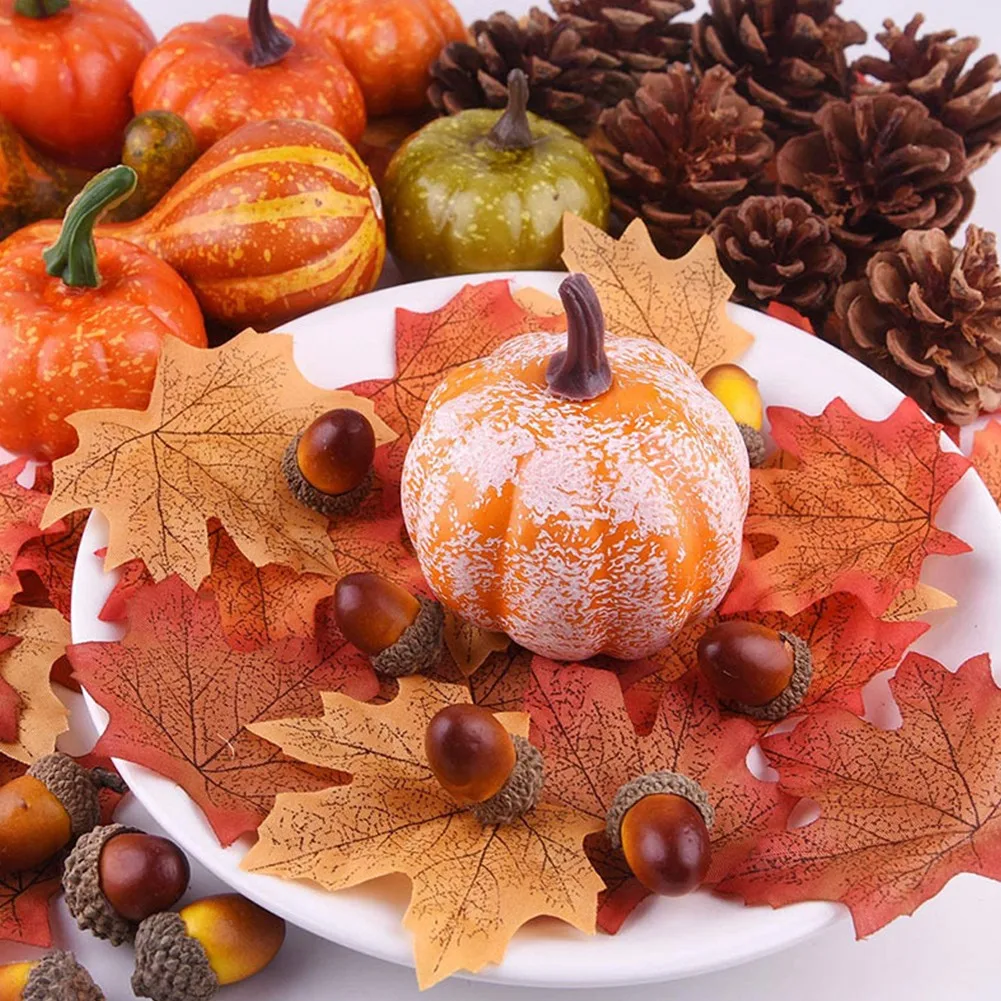 * Украшения на День Благодарения комплектов разных размеров и цветов. Вы можете украсить эти тыквы по своему усмотрению в сочетании с этими кленовыми листьями, чтобы сделать осеннюю гирлянду/венок или прекрасный дом в сказке на День Благодарения или Хэллоуин.