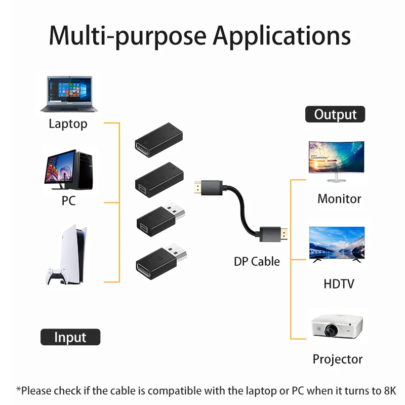 Displayport 1,4 к Mini DP Displayport кабель адаптер разъем конвертера 8K @ 60Hz HD видео для ноутбука монитор проектор HDTV