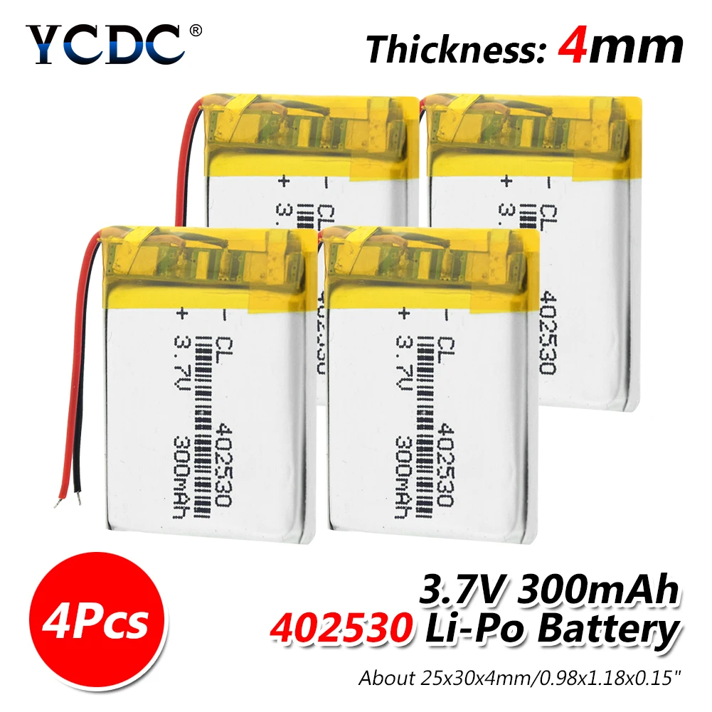1/2/4 штук 300 мА/ч, Перезаряжаемые литий-ионный Батарея 3,7 V 402530 литий-полимерные батареи игрушечная Беговая железная дорога светодиодный светильник гарнитура акумуляторная батарея