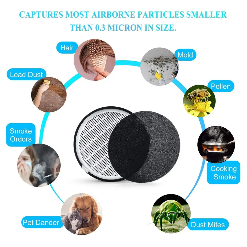 2. Этот размер получен при 7,5 дюймов длиной x 7,5 см в ширину x 2,4 дюймов (примерно 19,05 см х 19,05 см в ширину х 6,05 см в высоту) этот настоящий фильтр HEPA и фильтр с активированным углем могут удалить 99.97% пыли, дыма, запаха и т. д. Большие загрязнения воздуха PM 2