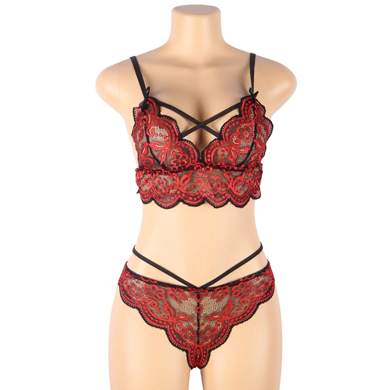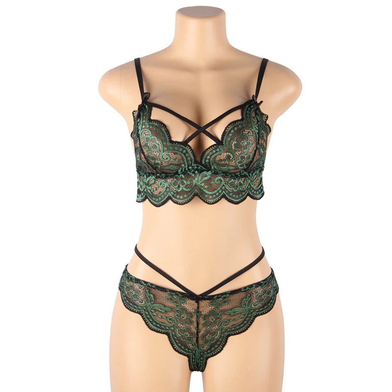 Набор кружевных бюстгальтеров с перекрестными ремешками размера плюс Souvetement Femme, сексуальный комплект бюстгальтеров и трусиков с вышивкой Bralette Encaje Mujer
