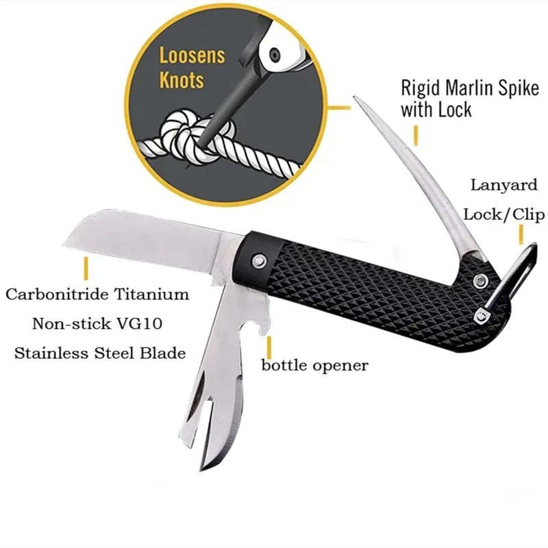 Практичный Нож для такелажа: с прочной шпилькой, идущей вдоль позвоночника, и кольцом-шнурком для надежного хранения, наш доступный матросский инструмент может быть легко использован для выбора линий, а также ослабляет все виды трудно развязать узлы.