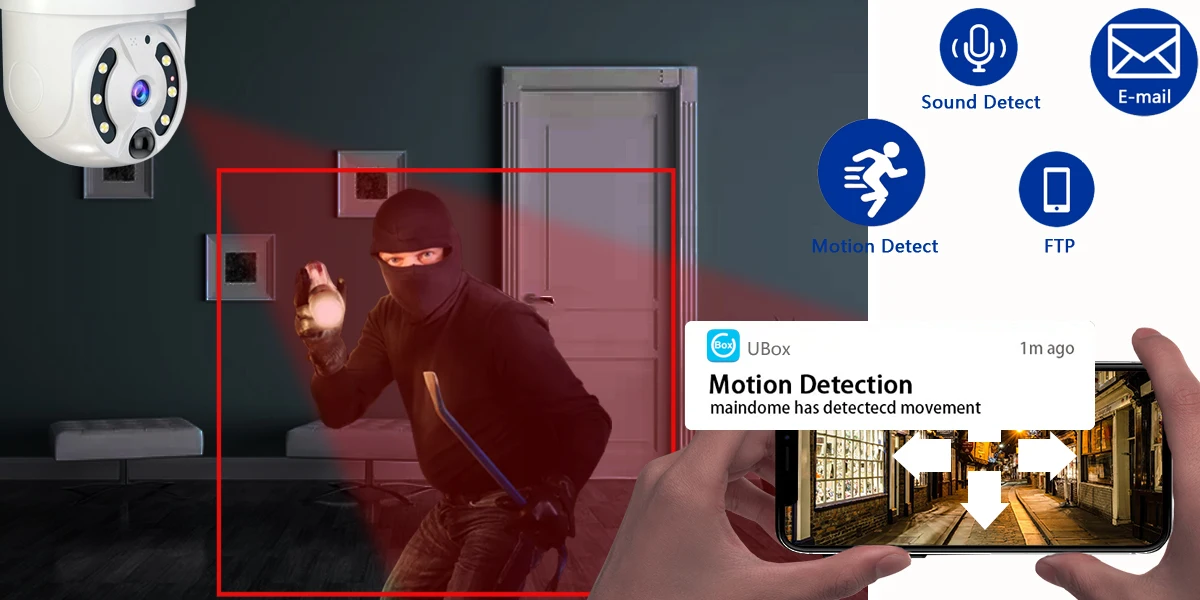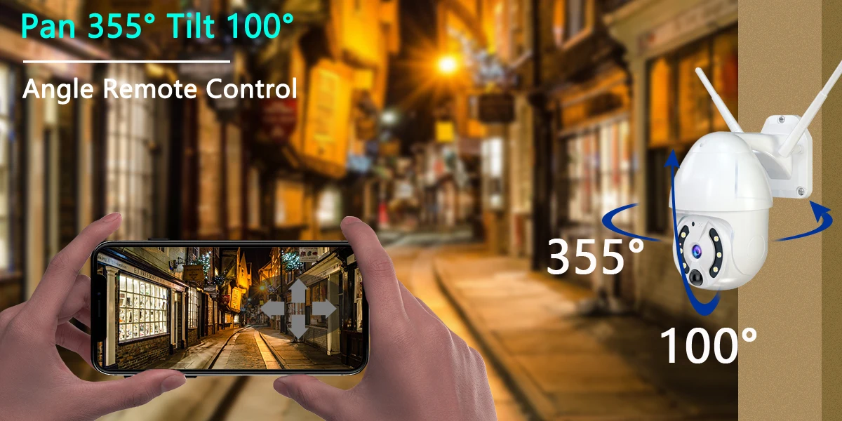 * С PTZ 355 ° панорамирование 100 ° наклон, 360 ° угол обзора, cctv камера беспроводная наружная может контролировать каждый угол. Поддержка горизонтального автоматического отслеживания и вертикального горизонтального ручного отслеживания.