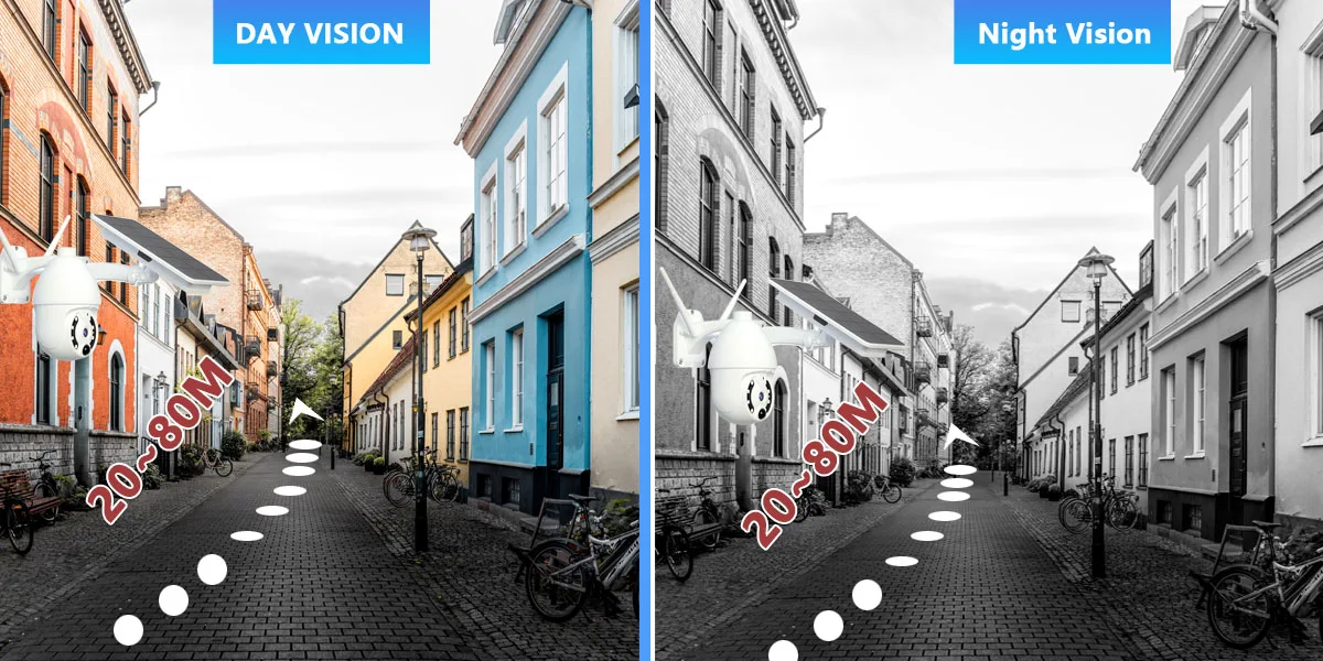 Инфракрасное Ночное Видение до 80 м, что позволяет вам видеть то, что вам нужно. Независимо от того, пробежал ли он в полночь или сломался енот, все будет снято камерой в подробном описании.