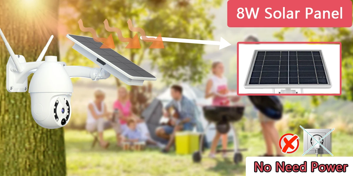 * Подключите камеру к солнечной панели 8 Вт, и она получит бесперебойную мощность весь день и всю ночь. Вы можете легко расположить устойчивую к атмосферным воздействиям солнечную панель для максимального воздействия солнечных лучей. Это избавляет вас от проблем с зарядкой камеры вручную.