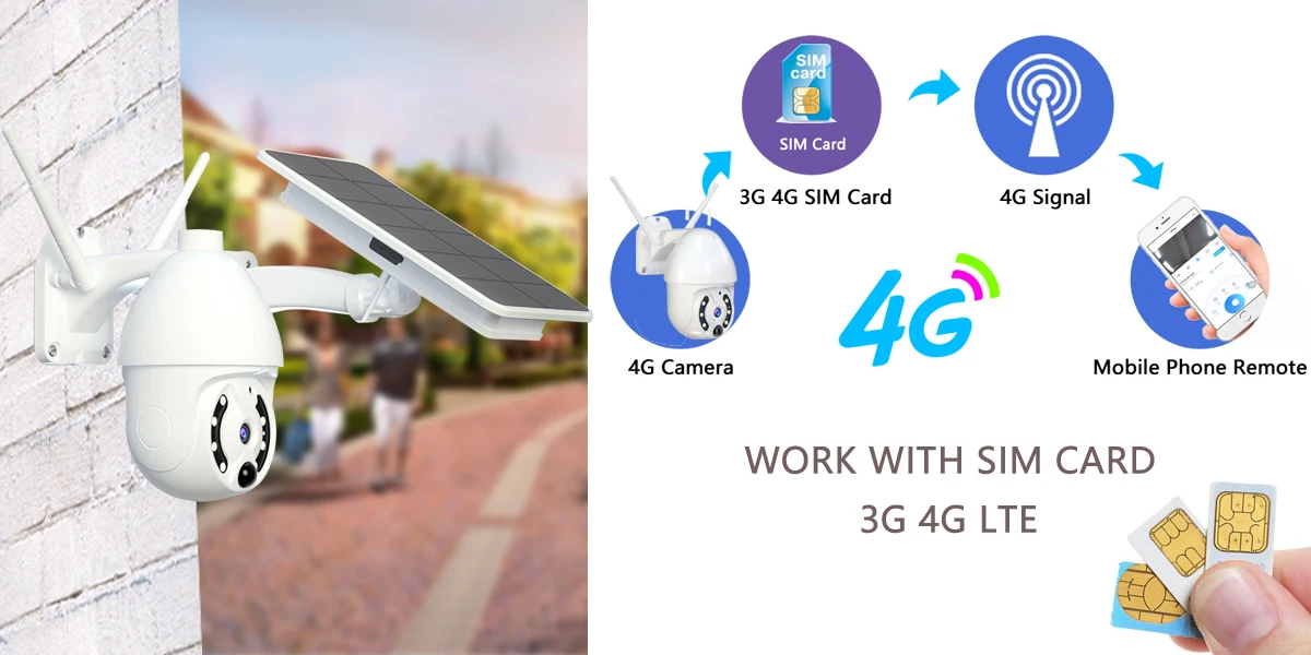 Эта камера наблюдения безопасности работает с sim-картой 3G/4G, вы можете использовать это в месте без Интернета или Wi-Fi.