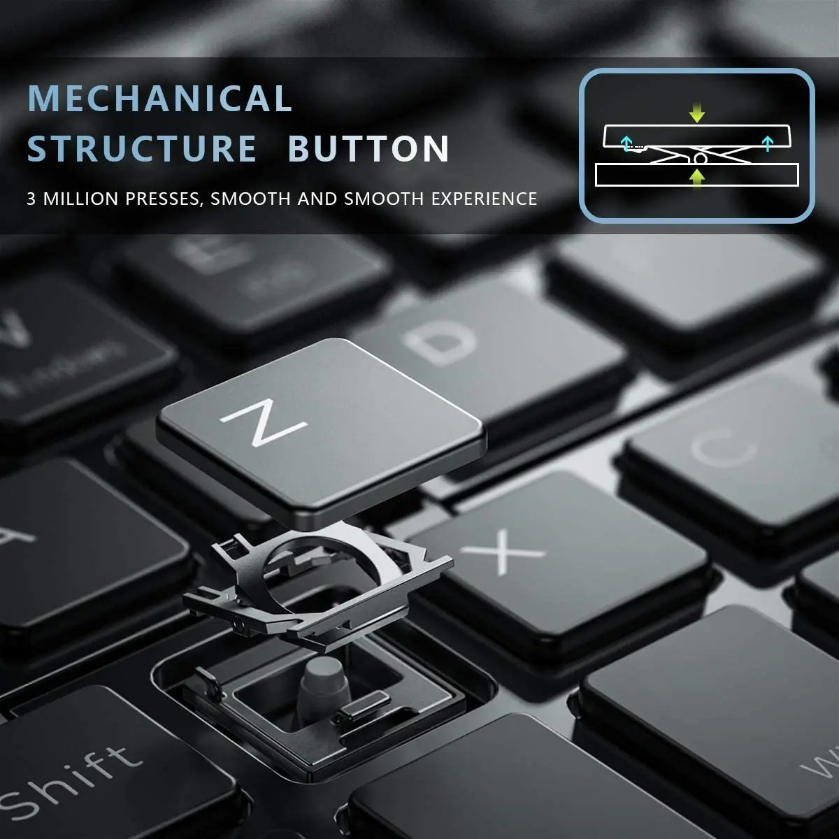 Клавиатура Geyes BT, изготовленная из алюминиевого сплава, Сверхтонкая и легкая. Компактный складной дизайн, вы можете положить его в сумку и носить с собой в любом месте.