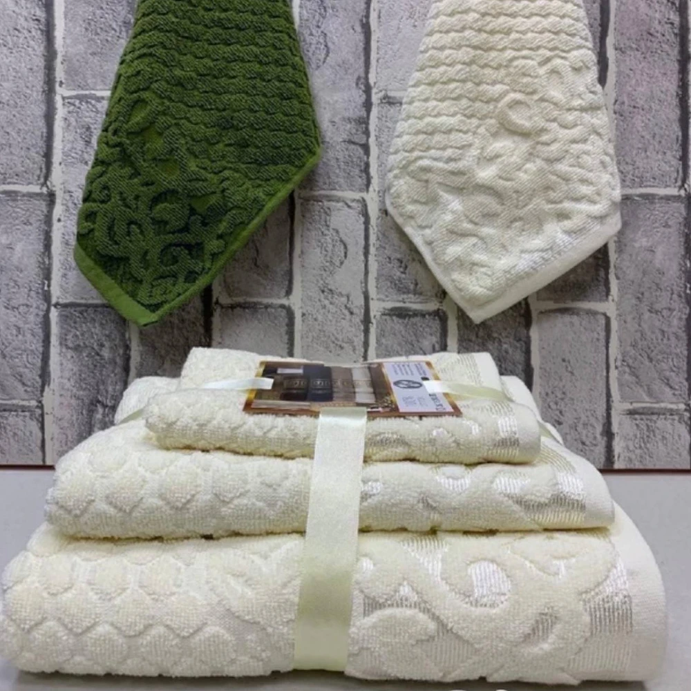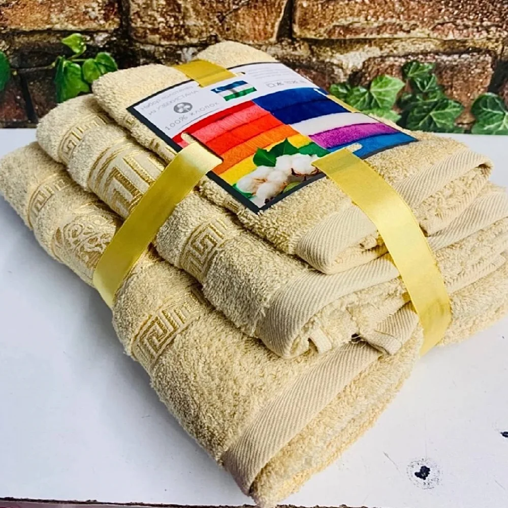 A set of terry towels from 3 subjects-soft, fluffy towels with excellent absorption. Will be a good gift for yourself and friends.