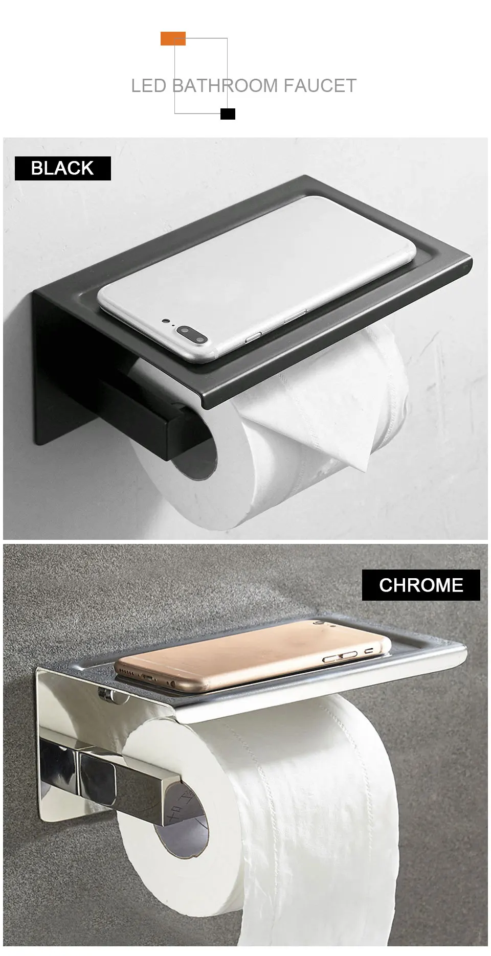 Прочный держатель рулона туалетной бумаги из нержавеющей стали 304. -Продукт изготовлен из высококачественной нержавеющей стали SUS304, а мастерство является стойким к ржавчине и коррозии для долговечности. Гладкий, элегантный дизайн полированная хромированная отделка идеально сочетается с любым стилем декора ванной комнаты или индивидуальным цветовым выбором или макетом.
