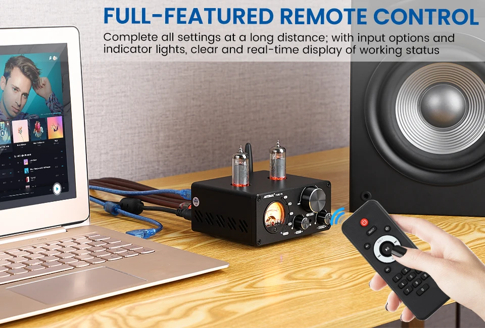 Описание продукта: Особенности: 1. Уникальное и удивительное сочетание: Интегрированный усилитель T9 с VU-метром в целом в таком мини-размере, когда Наслаждайтесь HiFi музыкой, указатель танцует в теплом светильник с сильным винтажным ощущением, динамически украшает пространство аудиосистемы. 2.HiFi чистый звук с контролем тона: повторная схема и лаконичная проводка, принимает вакуумные трубки, чтобы смягчить звук и отфильтровать цифровые чувства, звук теплый и сладкий без шума. Также с высокими частотами и ручки для бас-гитары, чтобы настроить свои предпочтительные стили звука, представляет HiFi музыку с громкими и глубокими уровнями. 3. Сильная выходная мощность и низкочастотный выход: Используйте amp IC TPA3221, каждый канал может выводить 100 Вт (4Ω), идеально и легко управлять всеми пассивными динамиками 3-8Ω, добавляет низкочастотный выход легко подключить активные колонки и сборки 2,1 канальная система, бас эффекты значительно усиленным впитыванием. 4. С несколькими цифровыми аудиовходами: Bluetooth 5,0/USB/коаксиальный/оптический/стерео RCA, совместим с большинством аудиоустройств, таких как телефоны, компьютеры, планшеты, ТВ s, ТВ, CD плееры и т. Д. Идеальное сочетание DAC и усилителя, очень подходит для аудиофилов, у которых есть различные аудиоустройства. 5. Практичные функции для упрощения использования: с выбором входного сигнала и индикаторами, четко показывают рабочее состояние в режиме реального времени; Чехол из алюминиевого сплава специально разработан, крутой и уникальный, чтобы украсить пространство вашего рабочего стола. Параметры продукта: Chipt: 6K4 + AC6926C + SA9123 + MS8412 + NE5532 Модель трубки: 6K4x2Pcs Сменные трубки: 6J1, 6J2, GE5654, 6J3, 6J4, 6J5, 6Ж1п, 6AK5 и т. Д. Поддержка: MP3/WMA/APE/FLAC/WAV Частота дискретизации ПК-usb: 24 бит96 кГц Оптическое волокно/коаксиальный Частота дискретизации: 24 бит 192 кГц Частота дискретизации Bluetooth: 24 бит 48 кГц ПК-usb Система поддержки: XP/W7/W8/W10/MAC/Linux Общее гармоническое искажение: 0.07% Отношение сигнал-шум: ≥ 98дБ Частотная характеристика: 20-20 кГц (± 1 дБ) Диапазон регулировки высоких частот/басов: ± 6 дБ Сопротивление динамика: 3-8Ω Выходная мощность: 100 Вт * 2 4Ω нагрузка Режим ввода: Bluetooth / RCA/pc-usb/оптический/коаксиальный Вспомогательное оборудование: мобильные телефоны, планшеты, компьютеры, MP3, TV и т. Д. Режим выхода: пассивный динамик, активный сабвуфер Рабочий Источник питания: DC18-30V Размер: 115*98*54 мм Посылка включает в себя: 1 шт. ламповый T9 трубный усилитель + 1 шт. адаптер питания (optinal)