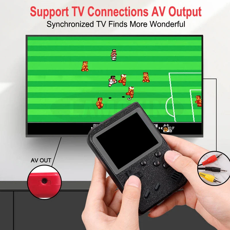 【Поддержка 2 игроков и подключение TV】 -- игровой джойстик включен в посылка для подключения к маленькой портативной игровой консоли в стиле ретро для игр с двумя играми. С выходом AV кабель может быть подключен к игровой консоли и телевизору, игры в мини-консоли будут отображаться на телевизоре немедленно, таким образом, вы можете легко наслаждаться живыми и захватывающими двухпользовательскими видеоиграми на большом экране для лучшего игрового опыта.