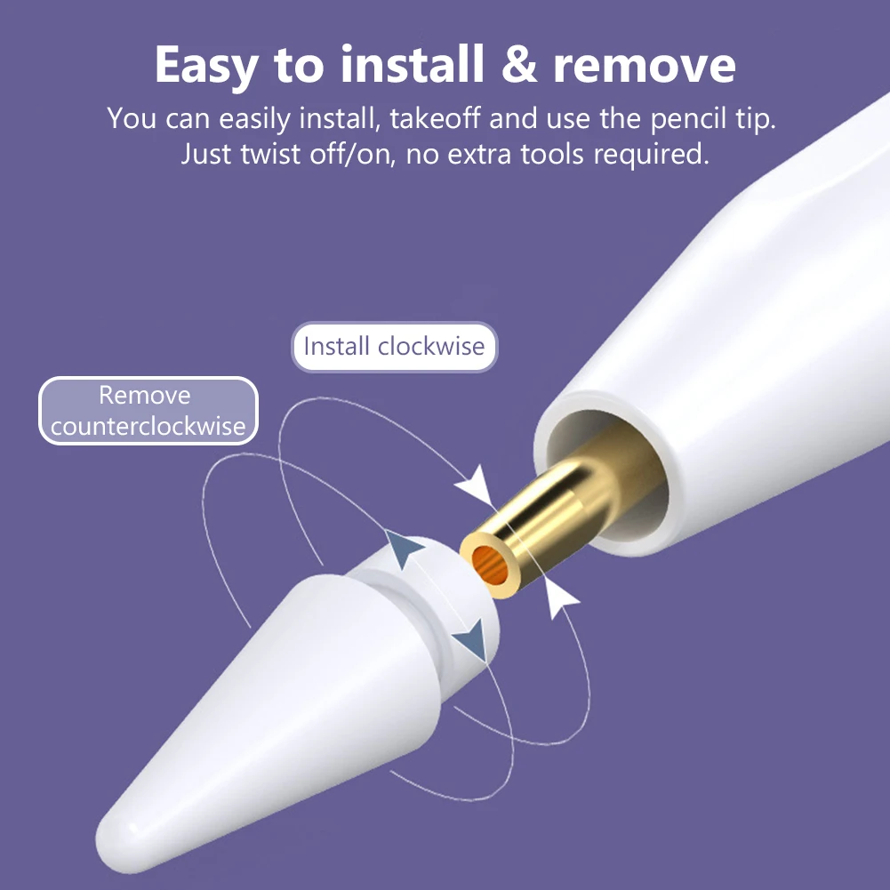 Легко устанавливается и снимается. Эти сменные наконечники для карандашей apple идеально сочетаются с вашим карандашом, как и оригинальный наконечник. Вы можете легко установить и использовать наконечник карандаша. Просто скрутите/ВКЛ, никаких дополнительных инструментов не требуется.