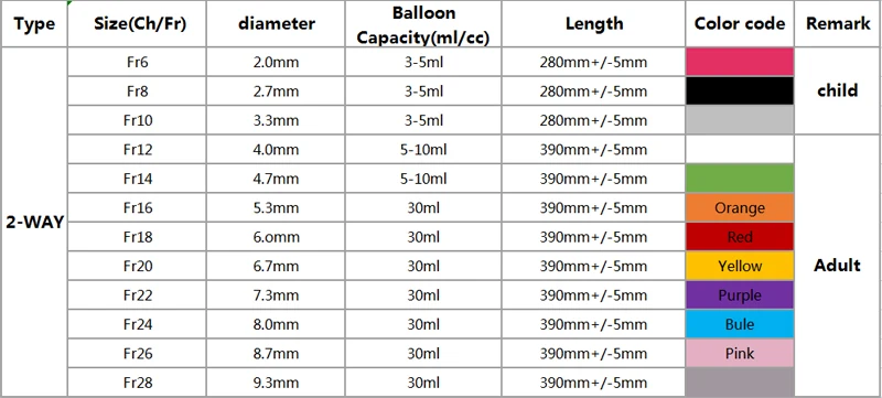 Fr12/Fr14/Fr16/Fr18/Fr20/Fr22/Fr24 (для взрослых)