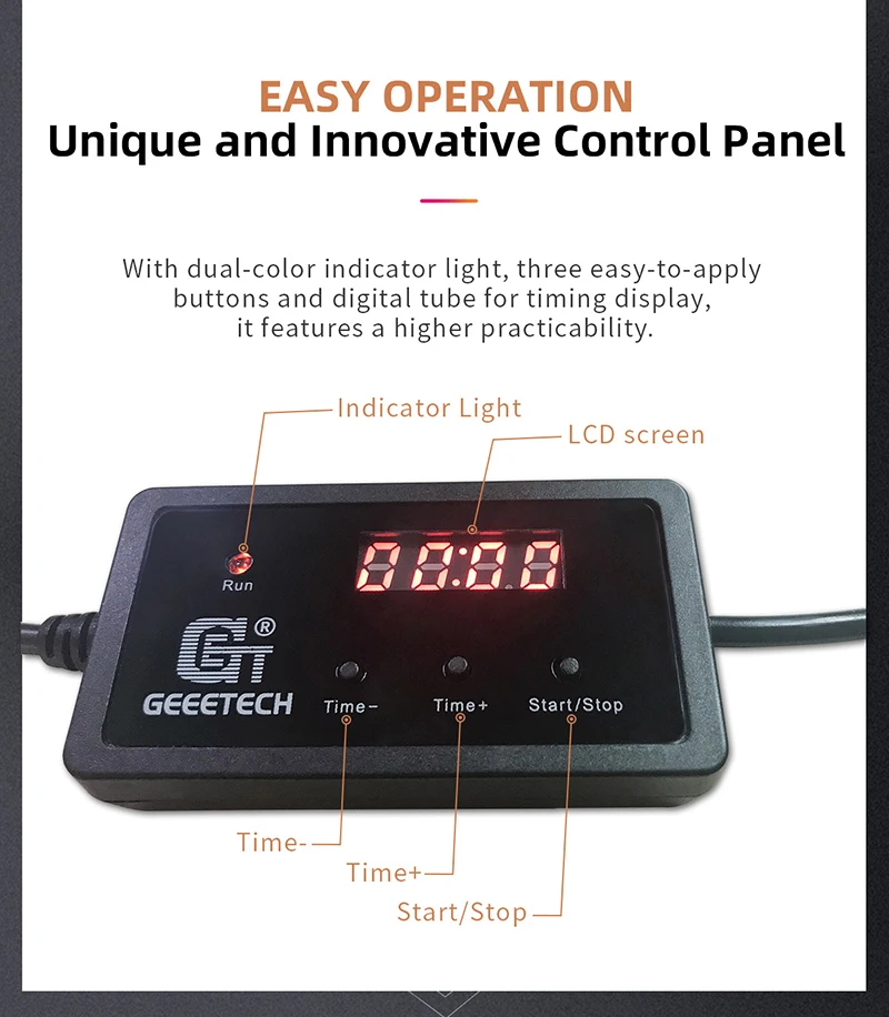С двухцветным индикатором светильник, Три простых в применении кнопки и цифровая трубка для отображение времени, он обладает более высокой практичностью.