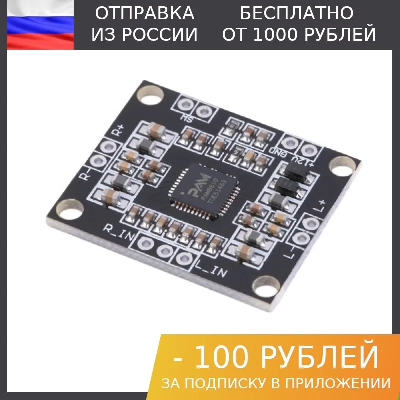 Модуль аудио стерео усилителя класса D на чипе PAM8610, рассчитанного на 2 канала, мощностью 10 Вт с питанием 7 - 15В. При питании больше 12В требуется радиатор для охлаждения.Характеристики:Напряжение питания: 7-15 ВПотребление в спящем режиме: 4 мкАКоэффициент гармоник при мощности 5 Вт на частоте 1 кГц и нагрузке 8 Ом: не более 0.1%Частотный диапазон: 20 Гц - 20 КГц Частота преобразования усилителя (Класс D): 350 КГц (это позволяет не использовать индуктивности в схеме - их заменяет индуктивность динамиков, сведя к минимуму габариты и вес стереоусилителя)КПД: 95%Мощность на канал: 10ВтРазмеры: 1.85 x 2.11 см