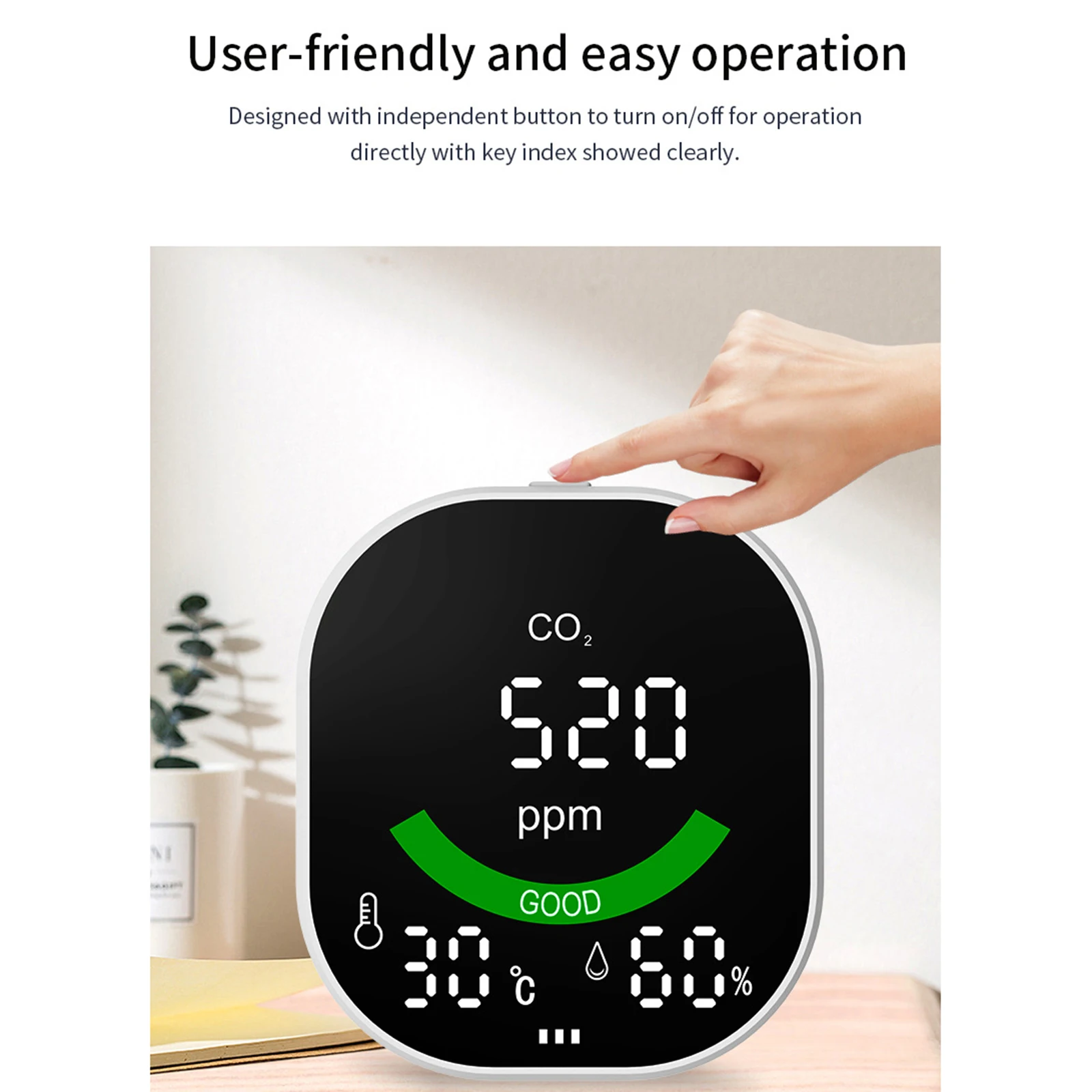 Точный и надежный:Используйте для проверки концентрации углекислого газа в помещении точно и быстро, и Контролируйте температуру и влажность в помещении в режиме реального времени.