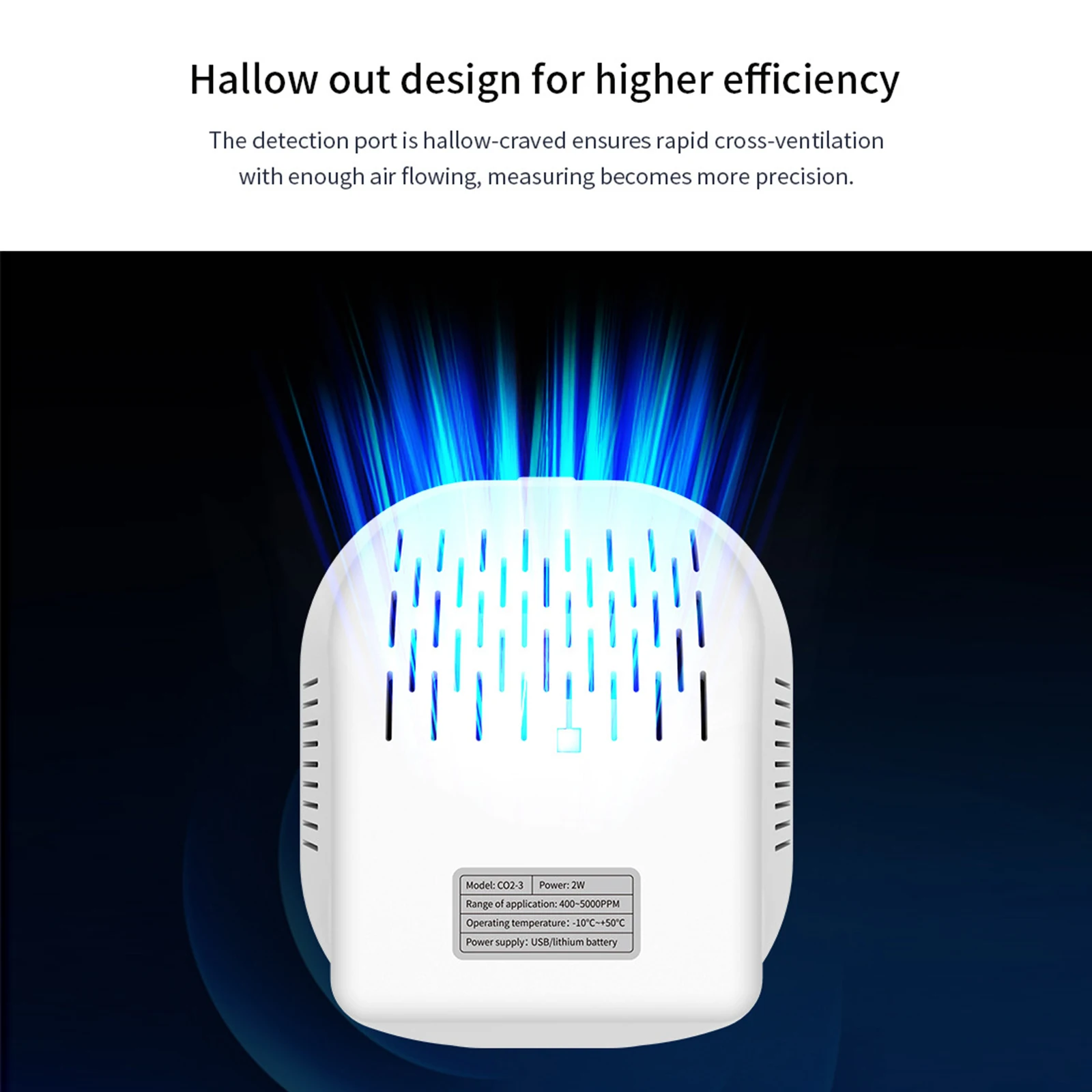 Это детектор углекислого газа, использующий нерассеивающую инфafкрасную технологию, быструю реакцию, высокоточные измерения, которые измеряют диапазон 400-5000PPM. Он предназначен для мониторинга качества воздуха, температуры и относительной влажности.