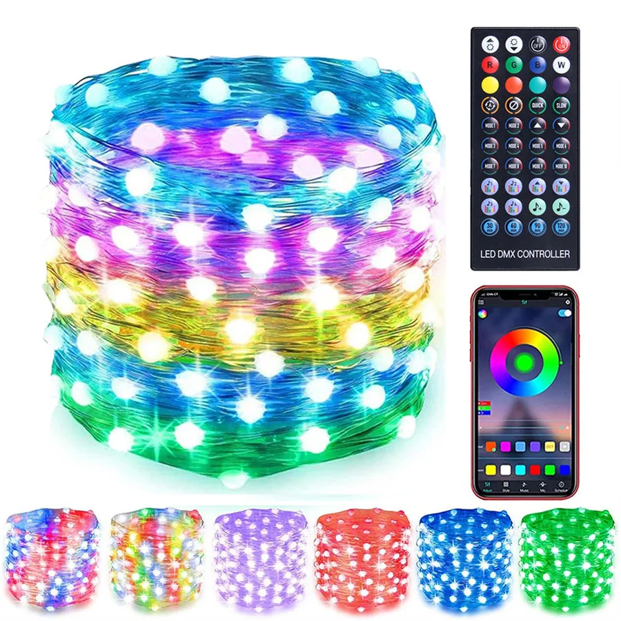 100/200 светодиодный Смарт Bluetooth приложение управления Светодиодный светильник шнура медный провод Сказочный светильник на открытом воздухе праздничные вечерние рождественские гирлянды светильник