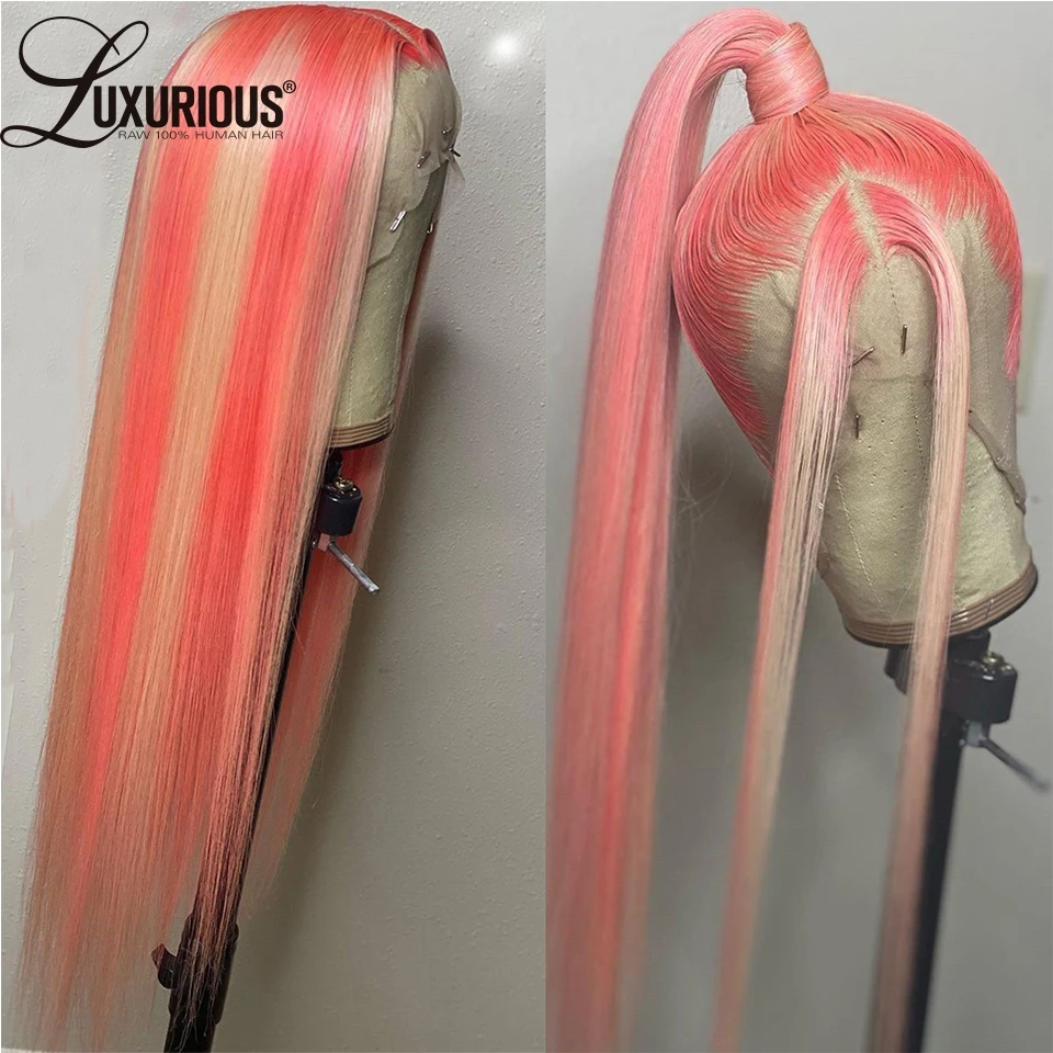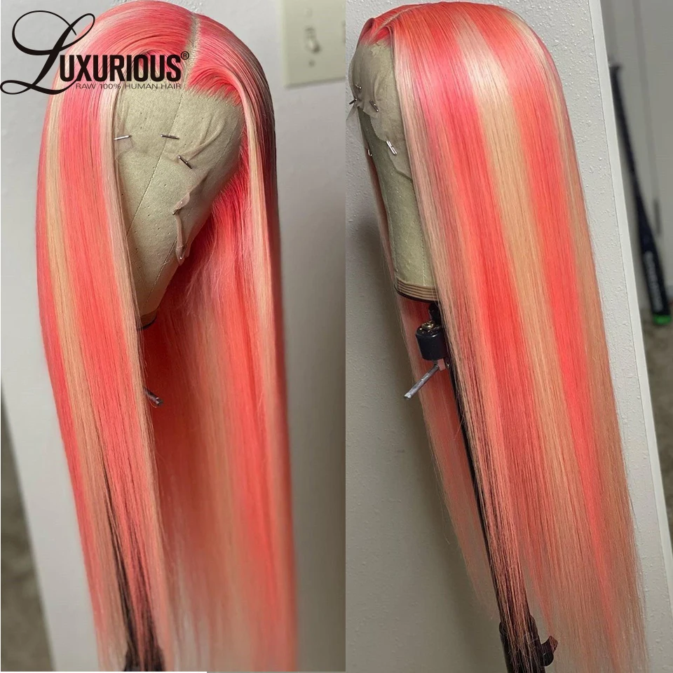 Розовые шелковистые прямые парики из человеческих волос для женщин, ярко-розовый парик на кружеве, прозрачные парики на кружеве, блонд, 613, фронтальный парик из кружева