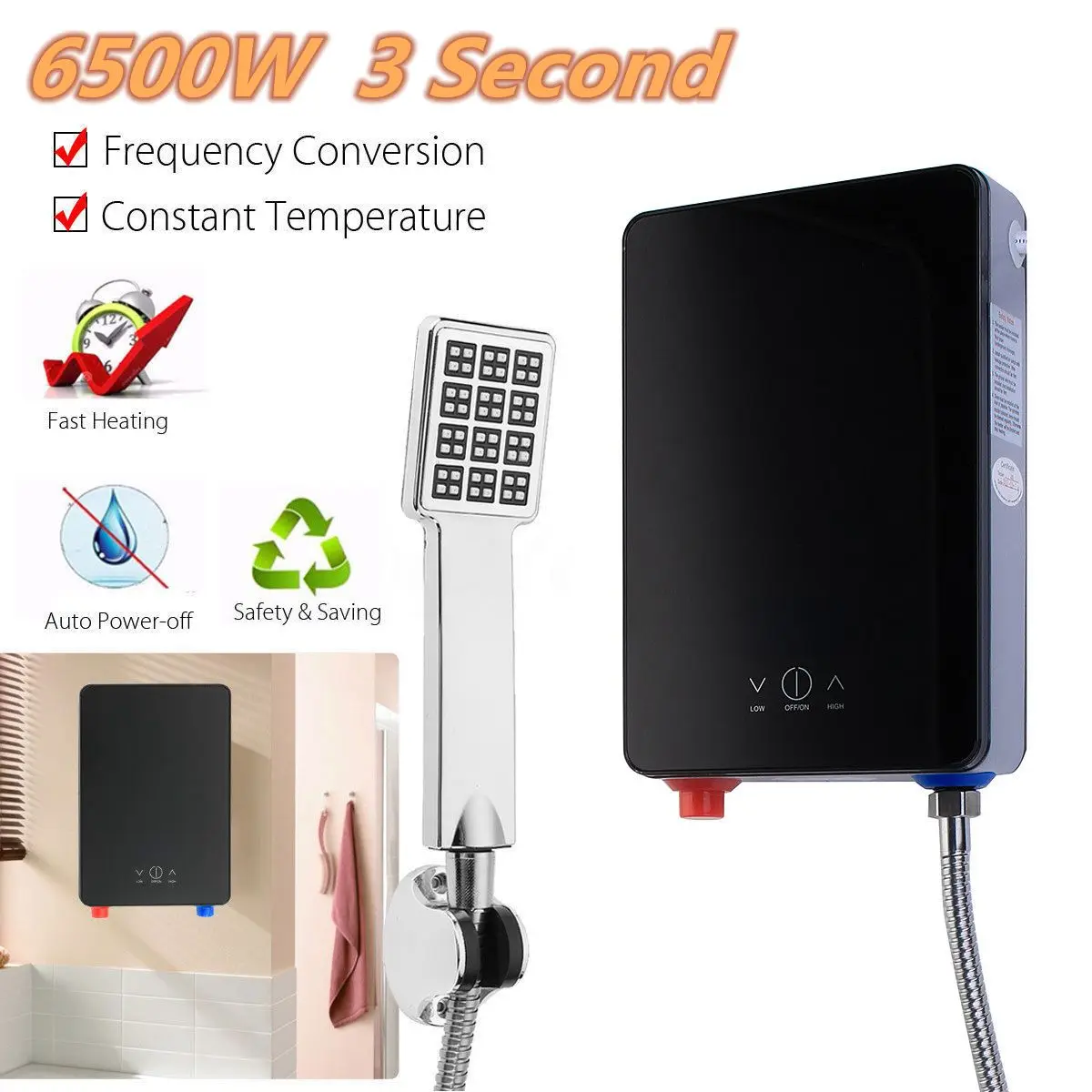 Не нужно предварительно нагревать перед использованием, горячая вода выйдет из нагревателя в течение нескольких минут после включения водонагревателя, вам нужно только остановить его сразу же после использования, никаких отходов для воды или электричества;