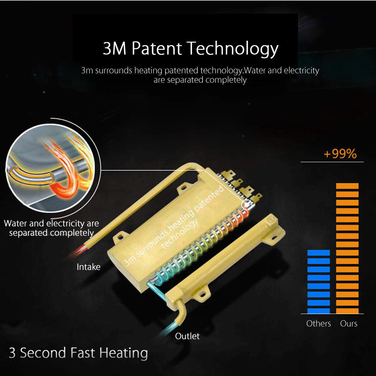 Высококачественный нагревательный элемент обладает хорошей коррозионной устойчивостью и кислотостойкостью, с более длительным сроком службы, мгновенной эффективностью нагрева до 99%;