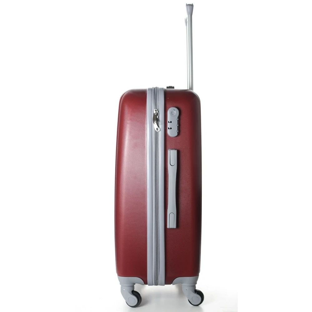 Чемодан на 4 колесах вращающихся вокруг своей оси на 360 градусов. Изготовлен из высокопрочного материала поликарбонат. Четыре прочных полиуретановых колеса на подшипниках позволяют легко перемещать чемодан. Имеет телескопическую ручку с фиксатором, эластичная прорезиненная ручка и кодовый замок.