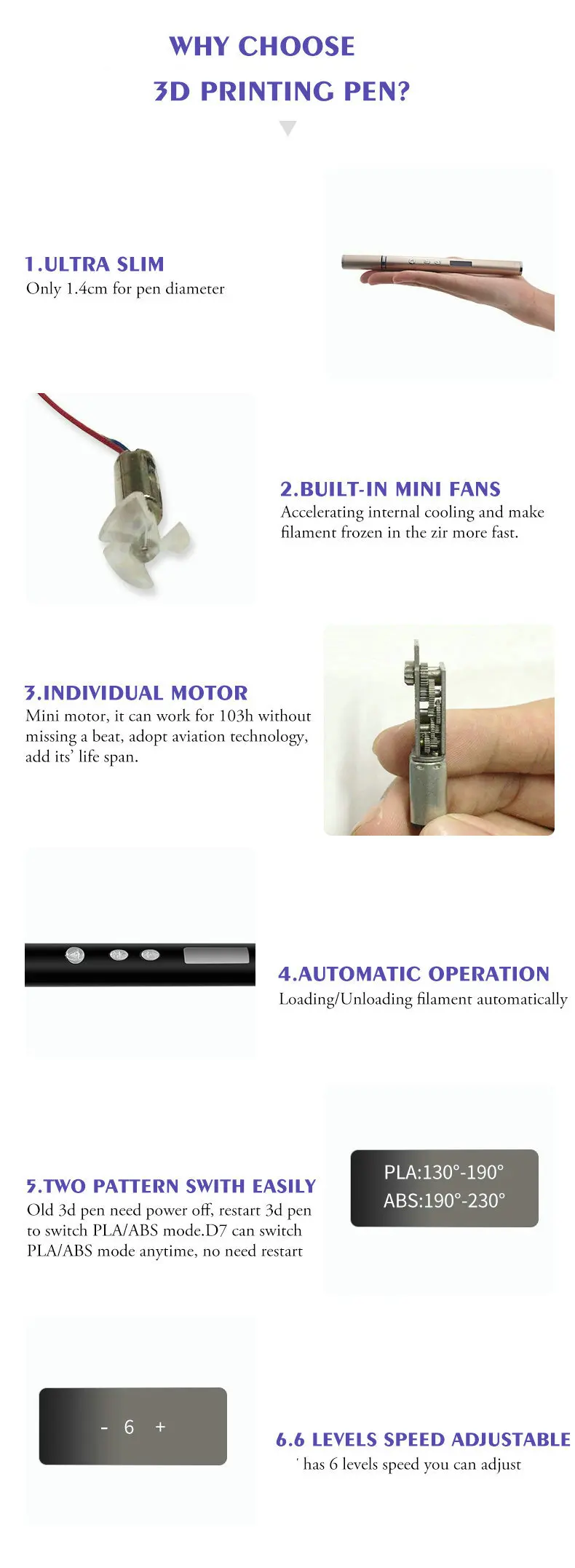 12.Два шаблонный переключатель легко: oРучка ld 3d требует отключения питания, перезагрузите 3d-ручку для переключения режима PLA/ABS, но эта 3d-ручка нового дизайна может переключать режим PLA/ABS в любое время, нет необходимости перезапуска.