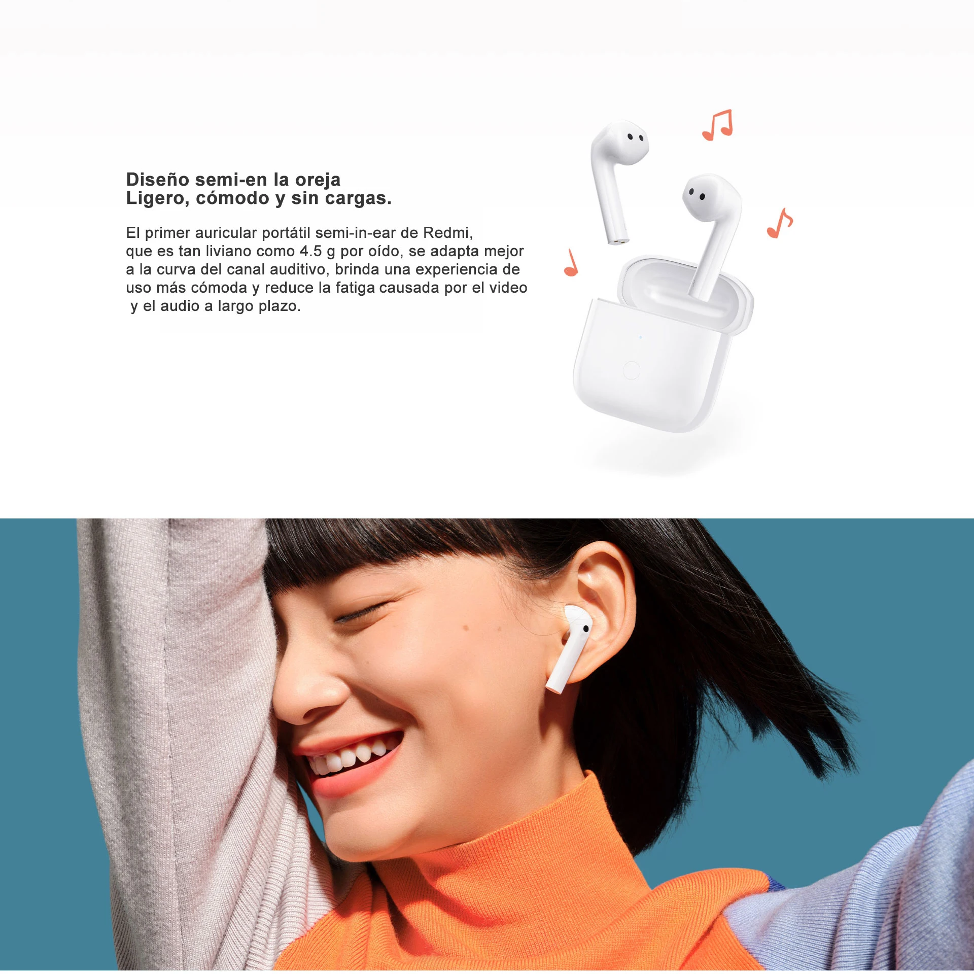 Redmi первый полу-in-ear износостойкая гарнитура, которая является как светильник как 4,5 г * в ухо, лучше облегает кривой ушному каналу, обеспечивает более комфортное ношение, И уменьшает усталость, вызванную длительным видео и аудио.