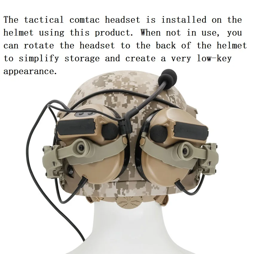 С помощью этого продукта на шлем устанавливается тактический гарнитура comtac. Когда гарнитура не используется, ее можно поворачивать к задней части шлема, что упрощает способ хранения и создает сдержанный внешний вид.