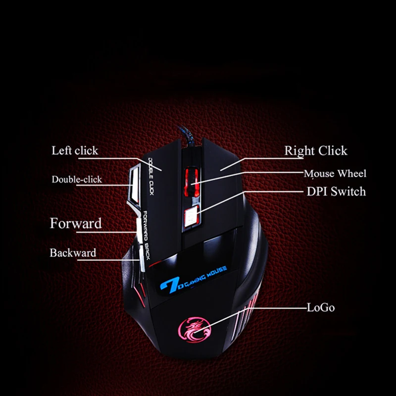 Кнопки: 7 кнопок с колесом прокрутки (две боковые кнопки, один переключатель DPI, одна кнопка огневой мощи)