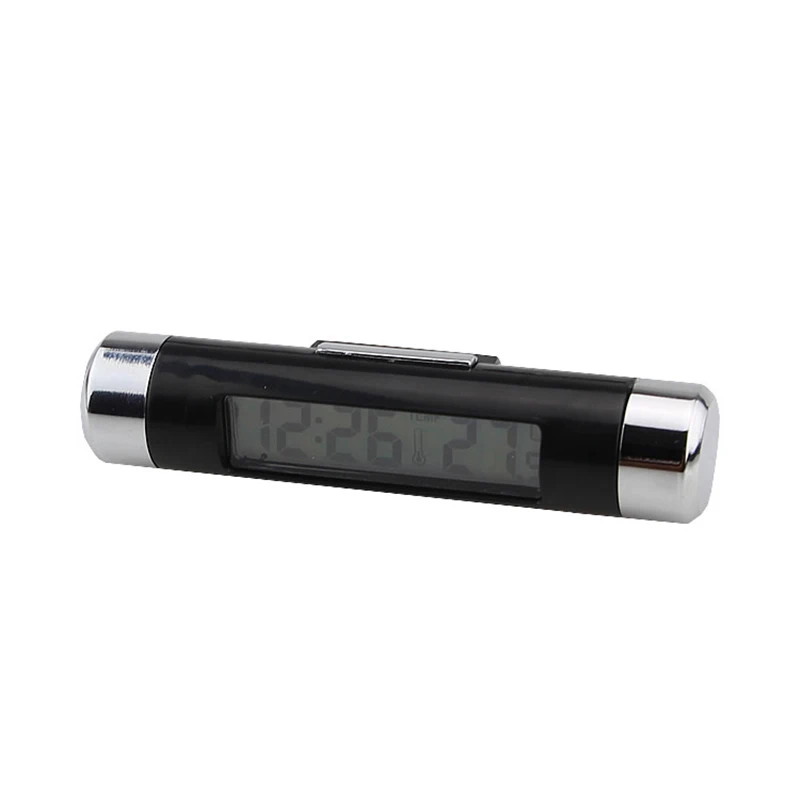 Характеристики: термометр для часов транспортного средства. Часы, функция отображения температуры, задний светильник: если задний светильник имеет кнопку, он будет светильник около 5 секунд после нажатия, оснащен зажимом, который может зажимать выход кондиционера/солнцезащитный козырек для легкой установки.