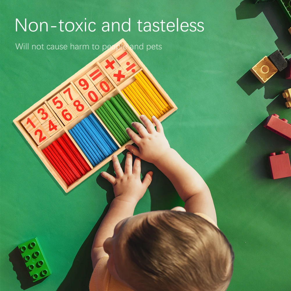 Красные, желтые, зеленые и синие деревянные палочки четырех цветов могут вызвать интерес ребенка к подсчёту и арифметике и могут использовать соответствующие цифровые деревянные блоки и сложение, вычитание, умножение и разделение деревянных блоков, чтобы помочь сокровище