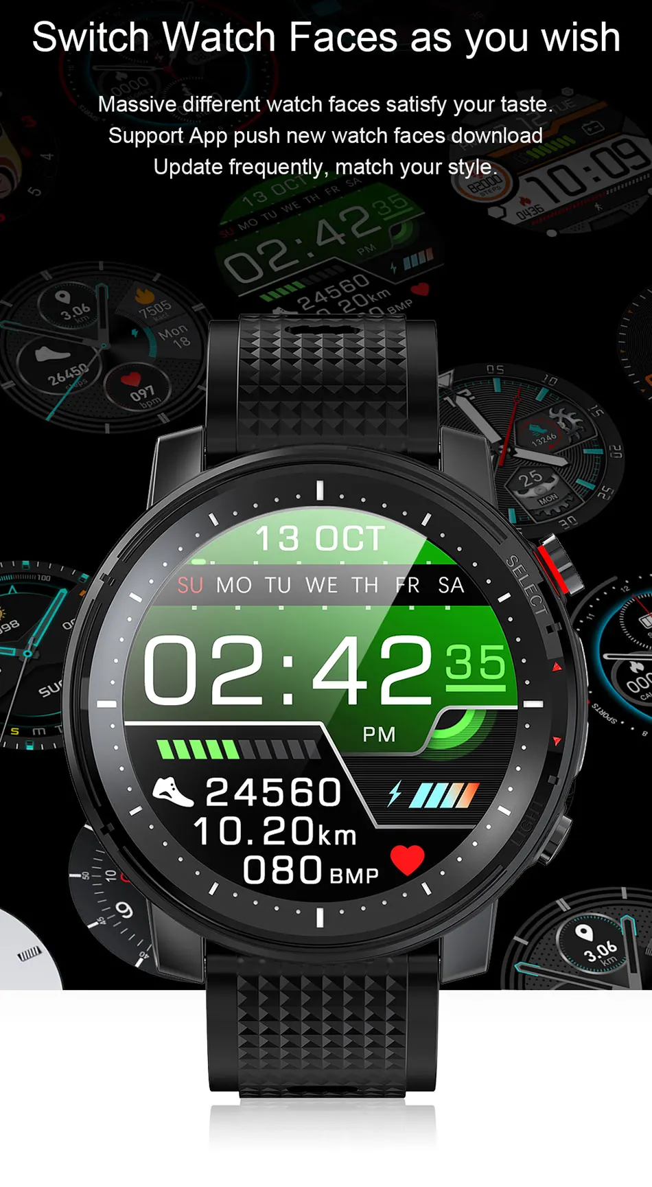IP68 Водонепроницаемый | 1,3 дюймов IPS 360*360 пикселей full круглый дисплей | 370 мАч батарея | 7 дней Время работы от аккумулятора,