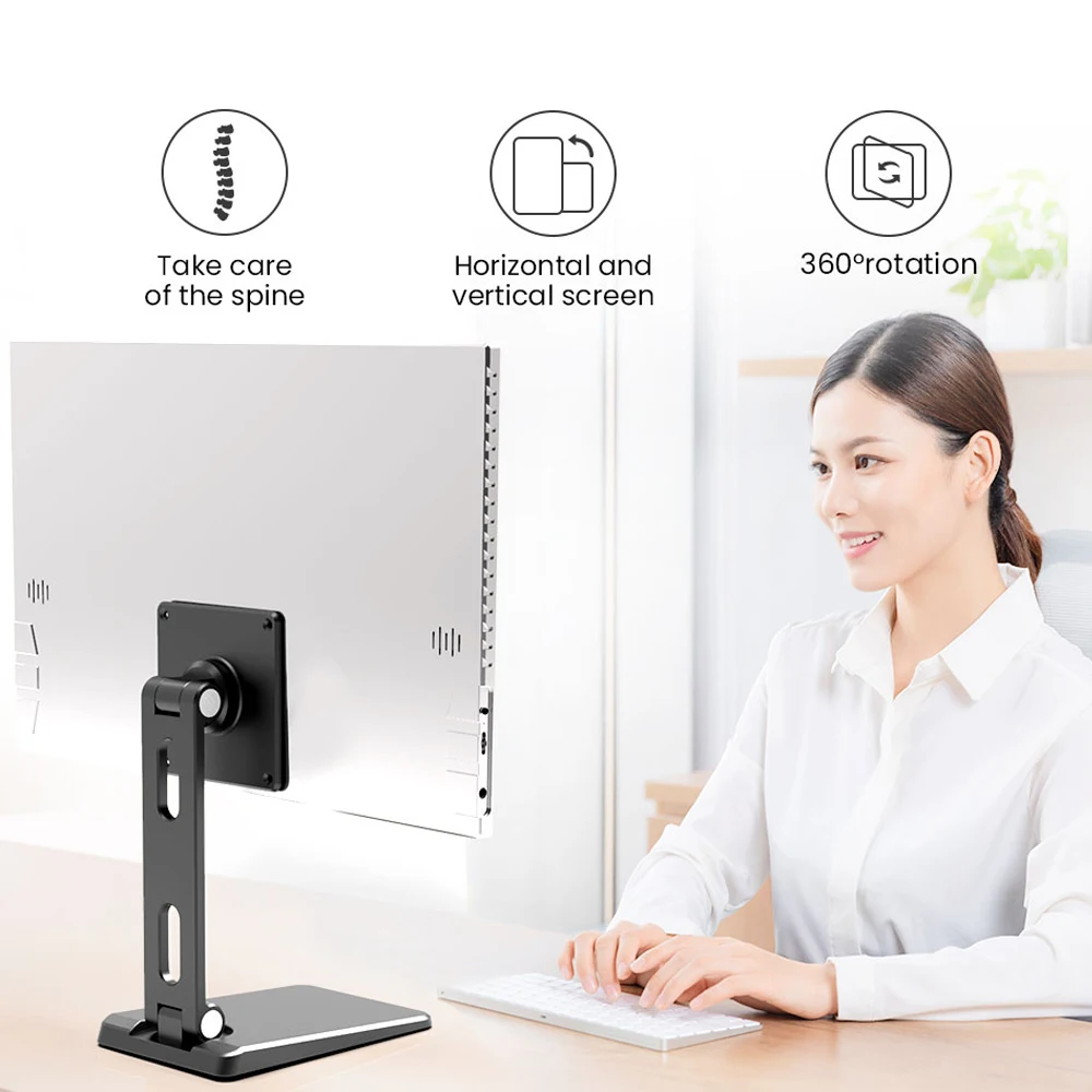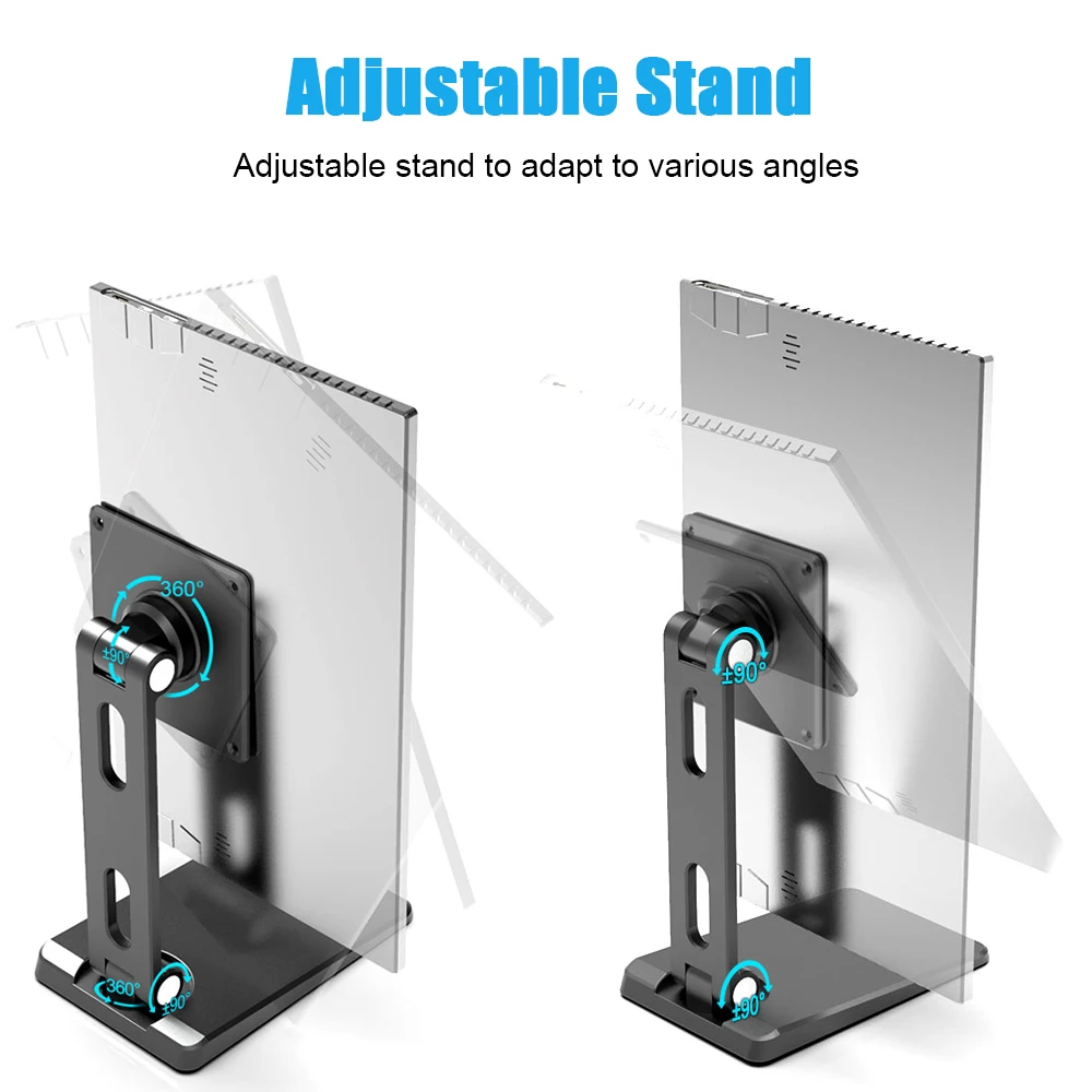 The portable stand specially designed for10.1" 13.3" 15.6" 17.3" portable monitors, is made of metal material, sturdy and durable, and can be rotated 360° to adjust to a comfortable angle of your view, perfect in size and easy to carry. The installation adopts VESA 75*75 interface. The stand makes your desktop more tidy.