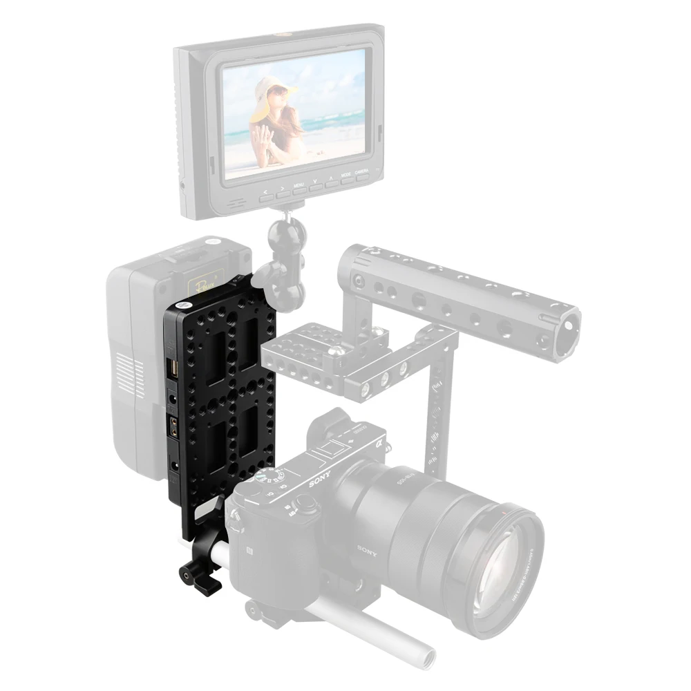 CAMVATE БЫСТРОРАЗЪЕМНАЯ v-образная Монтажная пластина, разделитель питания с 15 мм стержневым зажимом и сырной пластиной для батарея камеры DSLR
