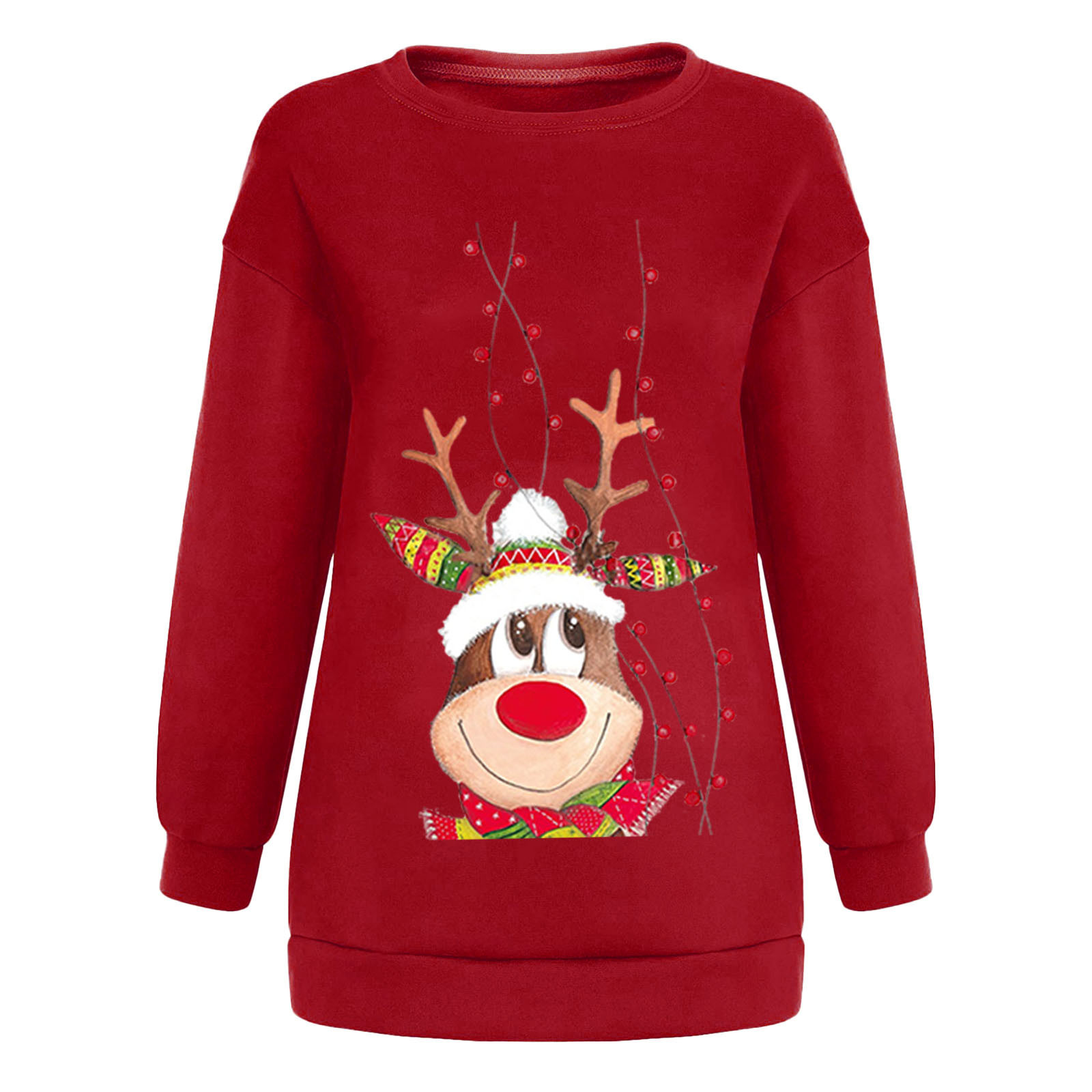 Особенности: Рождественские костюмы для женщин. Рождественская рубашка, которая позволит вам выглядеть весело и круто. Свободный Повседневный пуловер