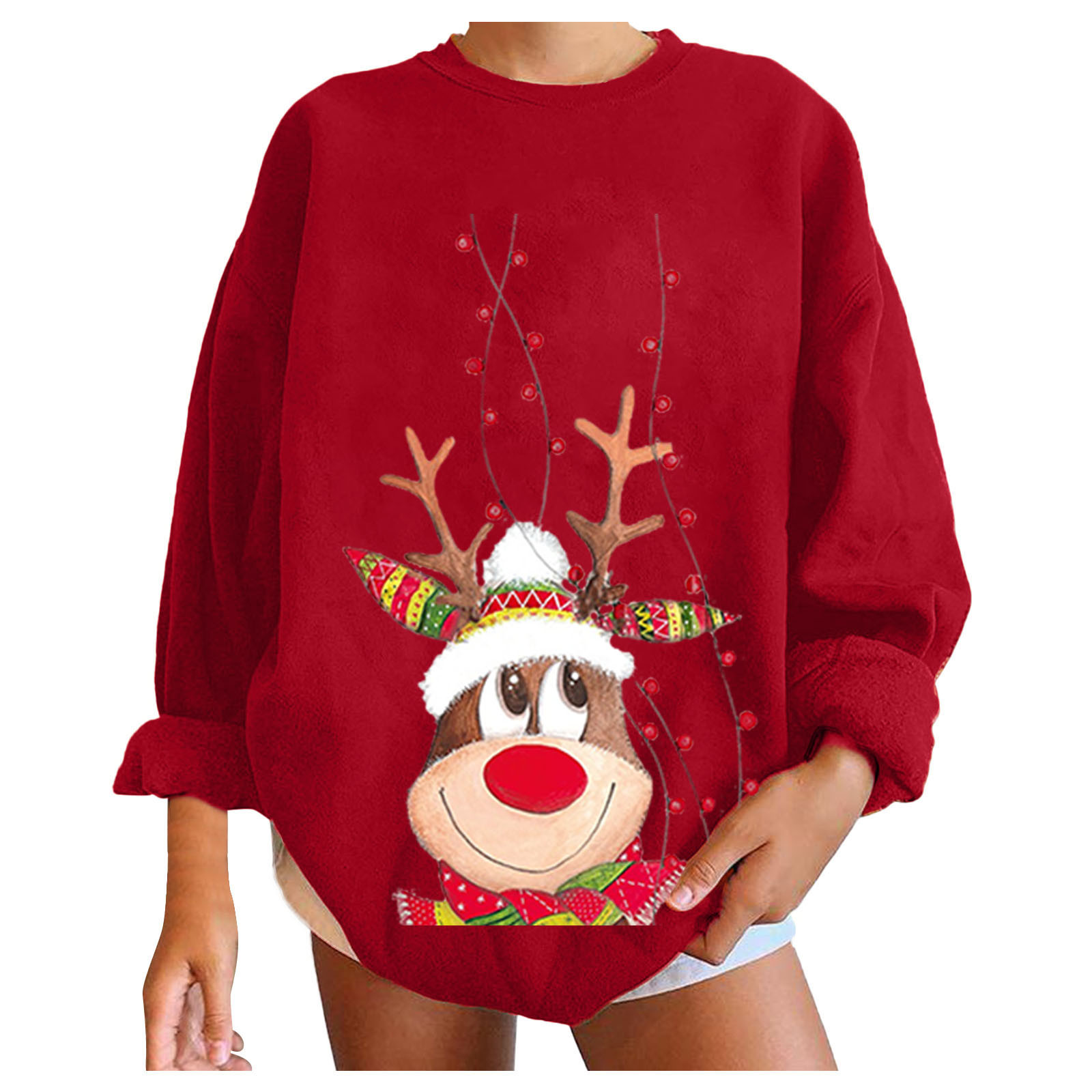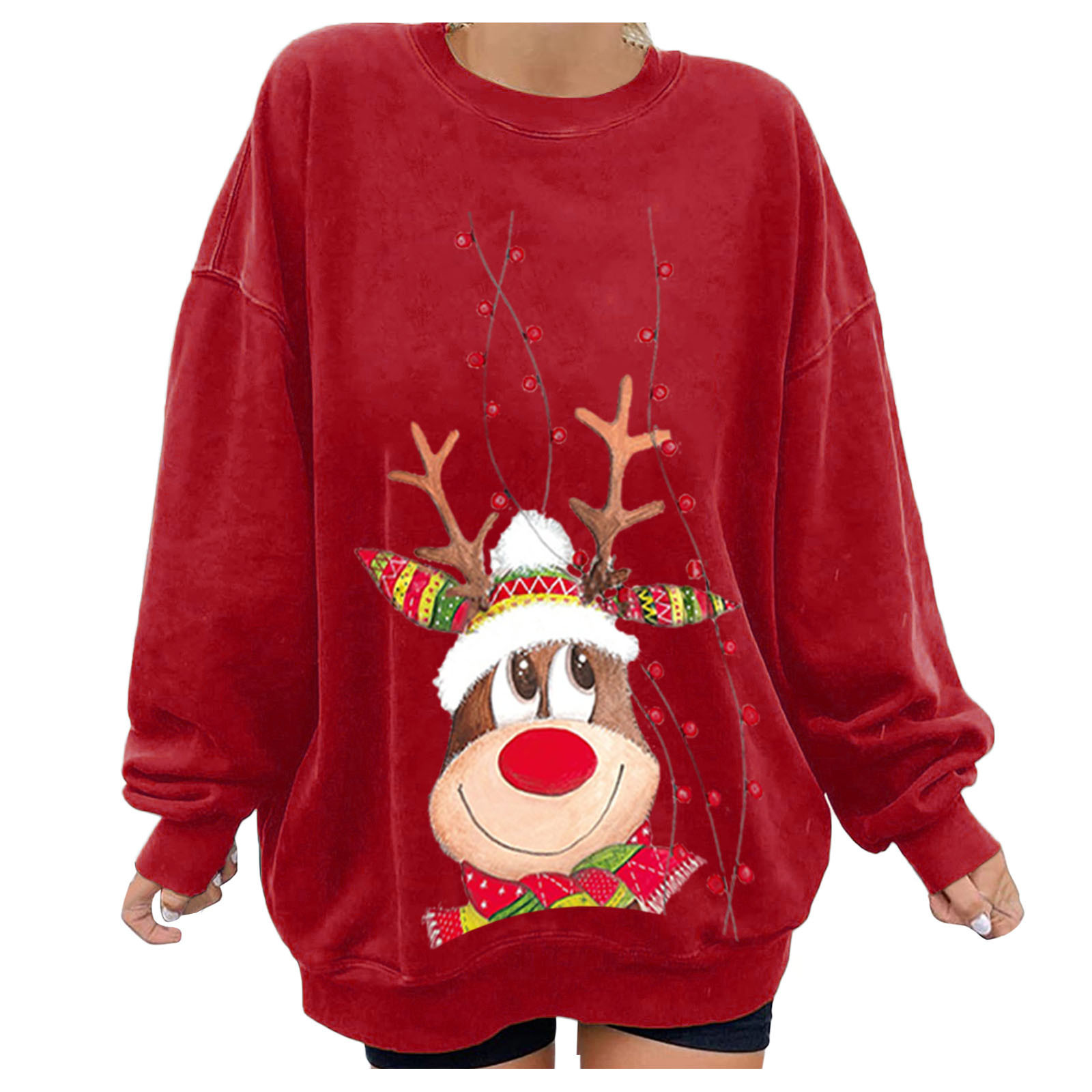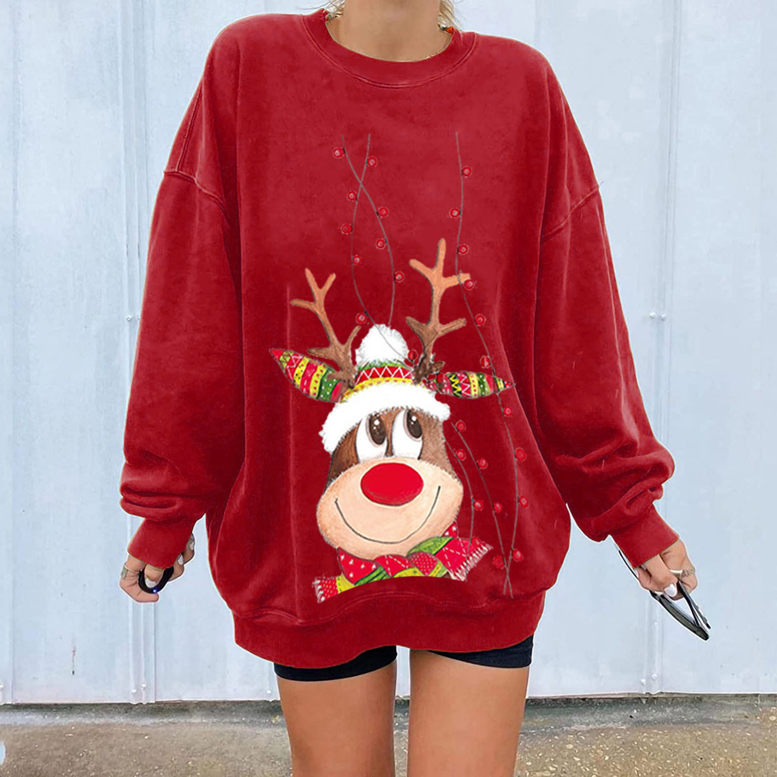 Женская Толстовка свободного покроя с длинным рукавом и круглым вырезом на Рождество