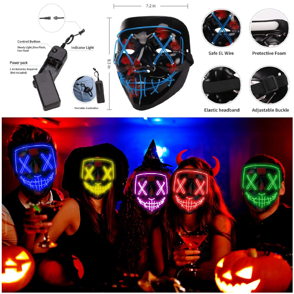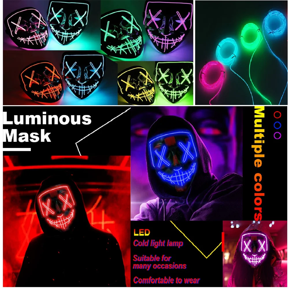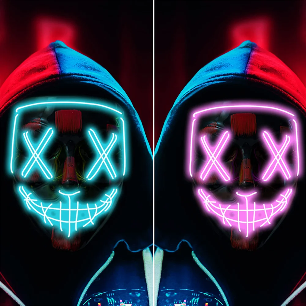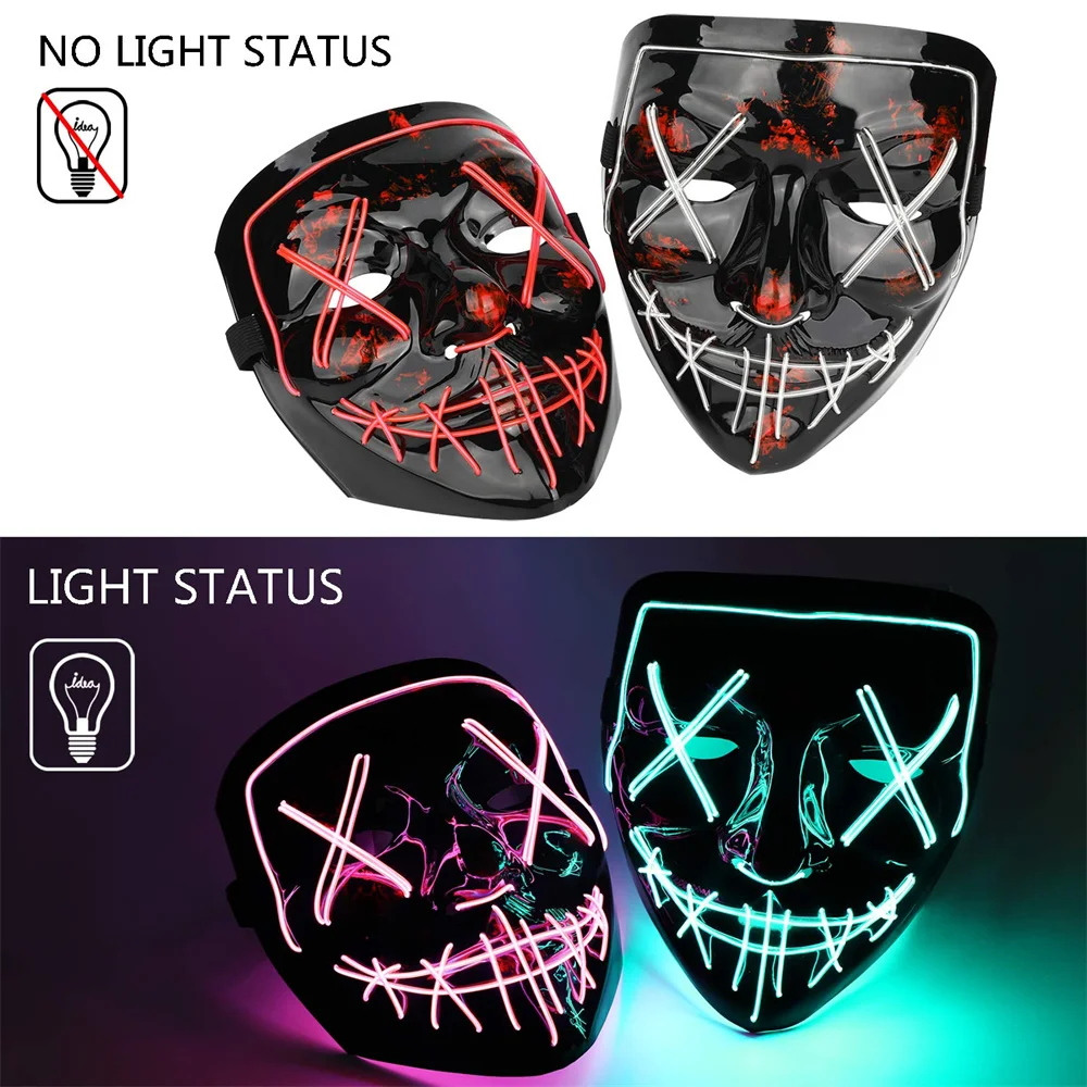 Светящаяся неоновая EL Вечерние Маски Хэллоуин СВЕТОДИОДНЫЙ маска страшная маска для вечеринки Косплей Вечерние Маски светильник Маскарадная маска светится в темноте