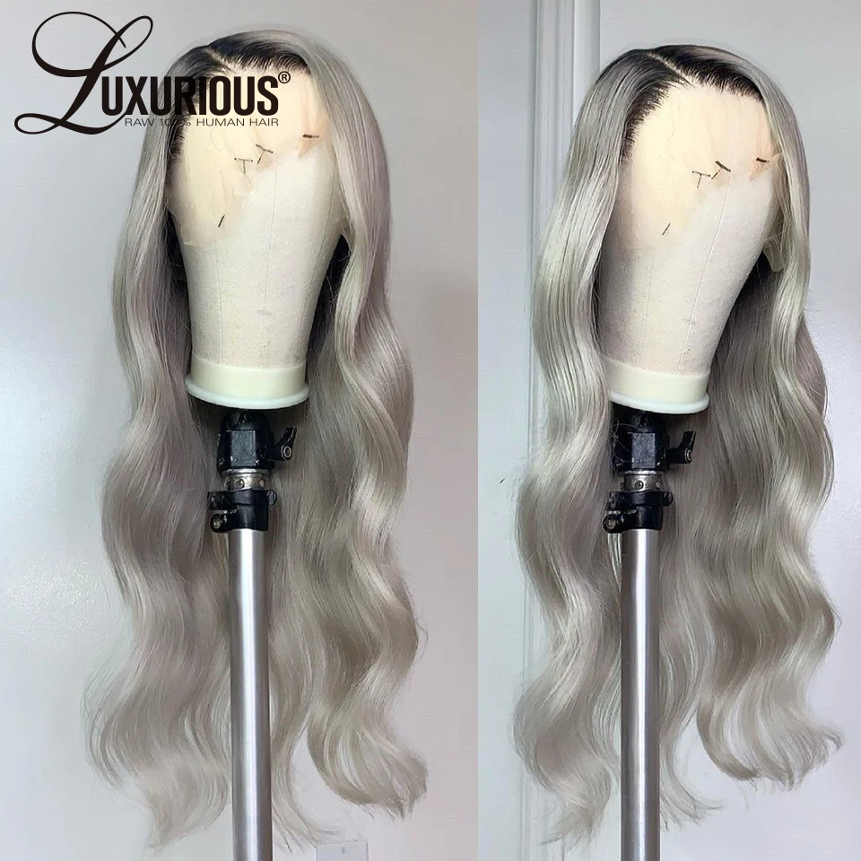 1B/серый цвет фронта шнурка человеческих волос парик прозрачная волна шнурка бразильские волосы 613 фронтальные парики шнурка для женщин человеческие волосы